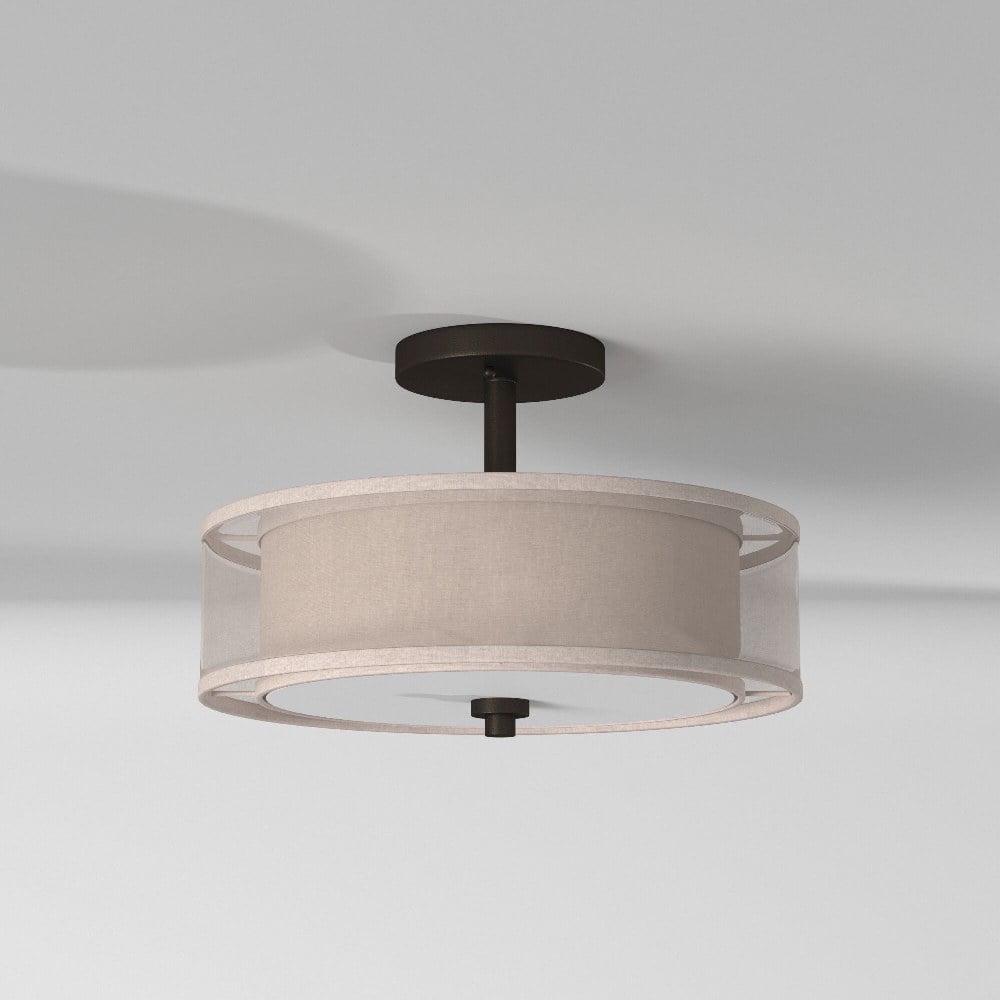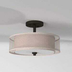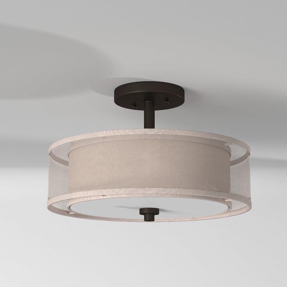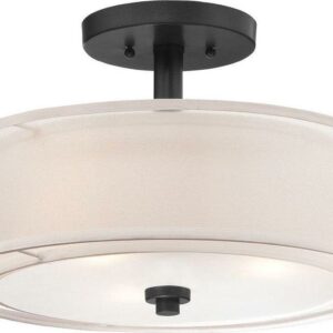 Collection: Parsons Studio, Material: Glass, Finish Color: Sand Coal, Width: 15″, Height: 10″, Length: 15″, Lamping Type: Incandescent, Number Of Bulbs: 3, Wattage: 60 Watts, Dimmable: Yes, Moisture Rating: Dry Rated, Desc: Shade Included: Translucent Silver Linen. , – – Parsons Studio – 3 Light Semi-Flush Mount in Transitional Style – 10 inches tall by 15 inches wide-Sand Coal Finish –
