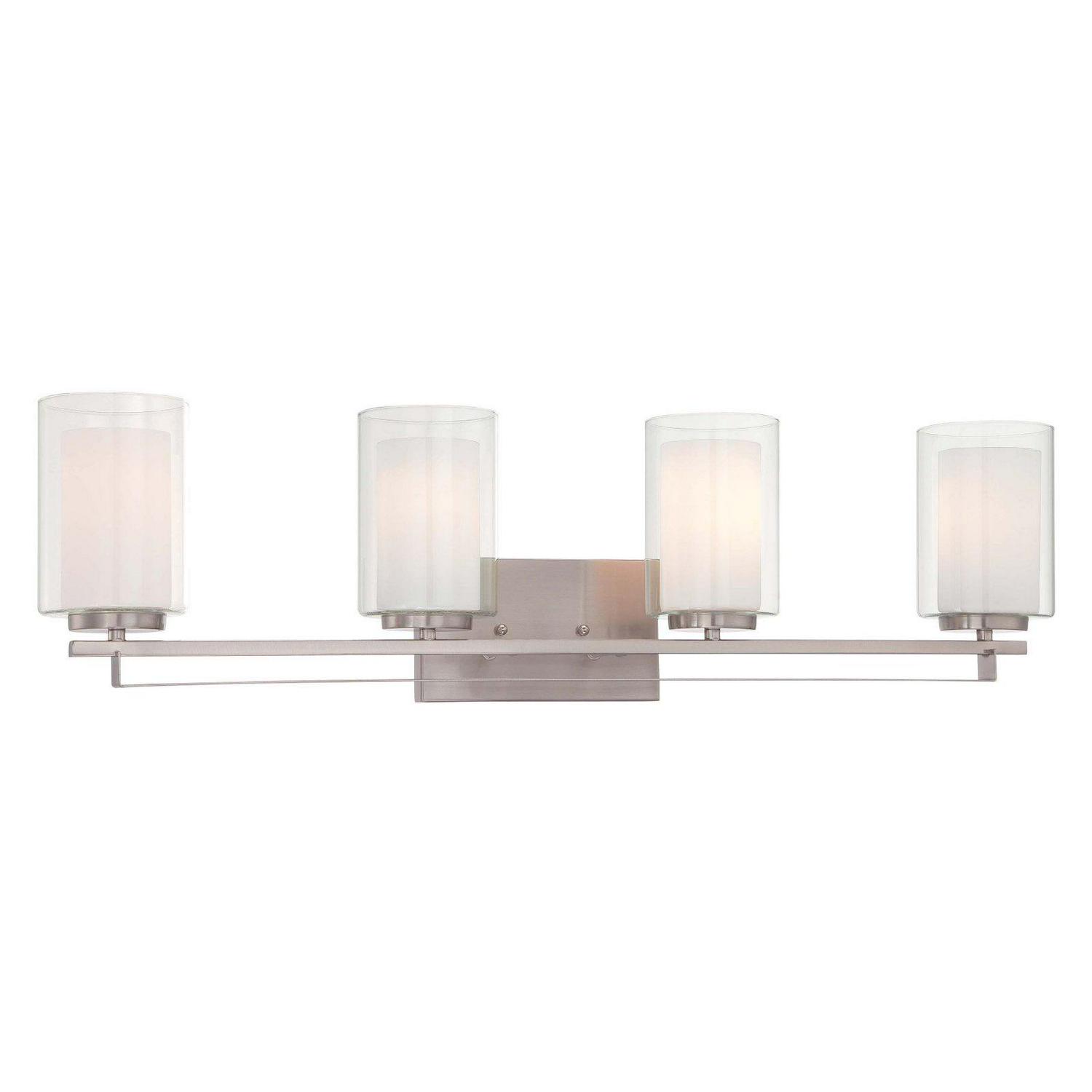 Minka Lavery-6104-84-Collection: Parsons Studio, Material: Glass, Finish Color: Brushed Nickel, Width: 32.5″, Height: 8.75″, Depth: 5.75″, Backplate Width: 8″, Backplate Length: 4.5″, Lamping Type: Incandescent, Number Of Bulbs: 4, Wattage: 100 Watts, Dimmable: Yes, Moisture Rating: Dry Rated, Desc: ,-Parsons Studio – 4 Light Bath Bar in Transitional Style – 8.75 inches tall by 32.5 inches wide-Brushed Nickel Finish