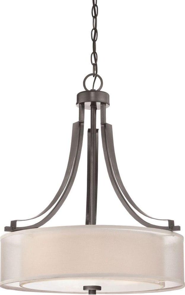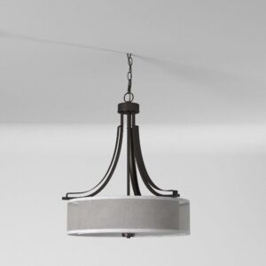 Minka Lavery-4104-172-Collection: Parsons Studio, Material: Glass, Finish Color: Smoked Iron, Width: 20.5″, Height: 23.5″, Length: 20.5″, Lamping Type: Incandescent, Number Of Bulbs: 3, Wattage: 100 Watts, Dimmable: Yes, Moisture Rating: Dry Rated, Desc: Shade Included: Translucent Sliver Linen. ,-Parsons Studio – Pendant 3 Light Translucent Sliver Linen in Transitional Style – 23.5 inches tall by 20.5 inches wide-Smoked Iron Finish -Traditional Installation