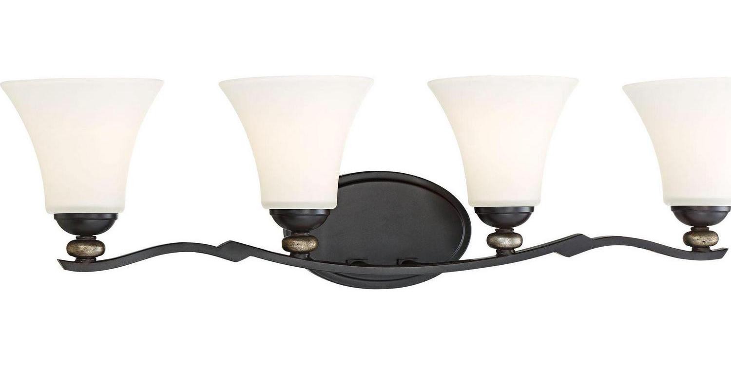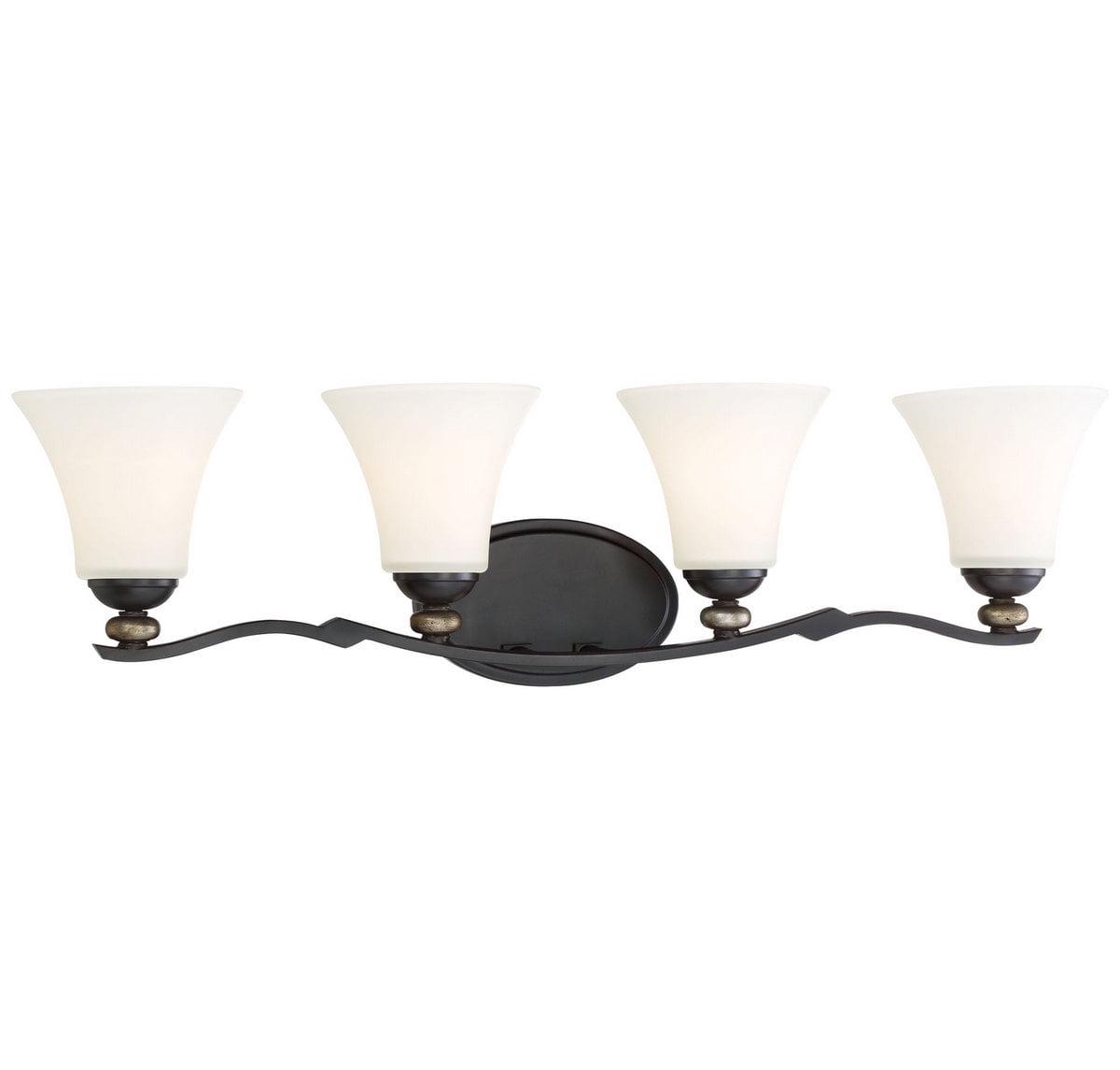 Minka Lavery-2284-589-Collection: Shadowglen, Material: Steel, Finish Color: Lathan Bronze/Gold, Width: 31.5″, Height: 8.75″, Depth: 7.5″, Backplate Width: 8″, Backplate Length: 5″, Lamping Type: Incandescent, Number Of Bulbs: 4, Wattage: 100 Watts, Dimmable: Yes, Moisture Rating: Dry Rated, Desc: Mounting Direction: Reversible / Shade Included: TRUE. ,-Shadowglen – 4 Light Transitional Bath Vanity in Transitional Style – 8.75 inches tall by 31.5 inches wide