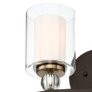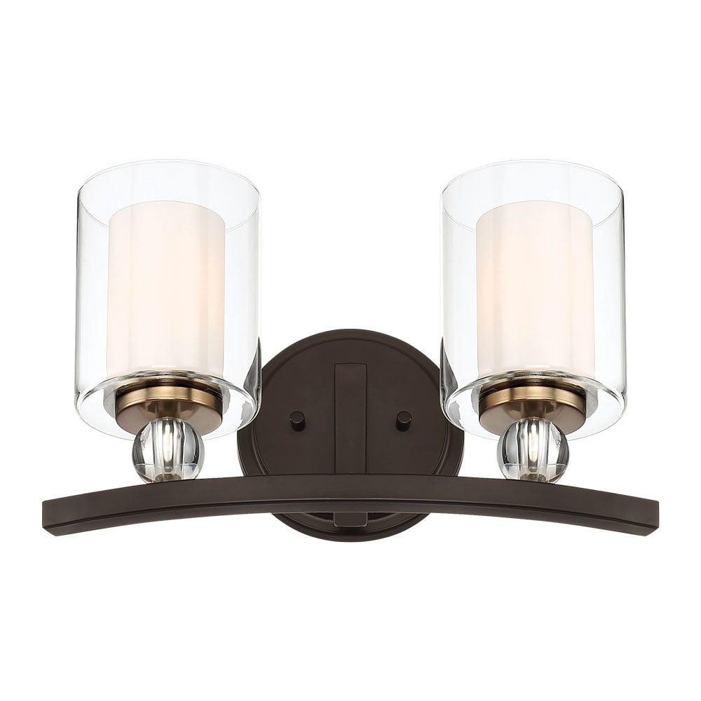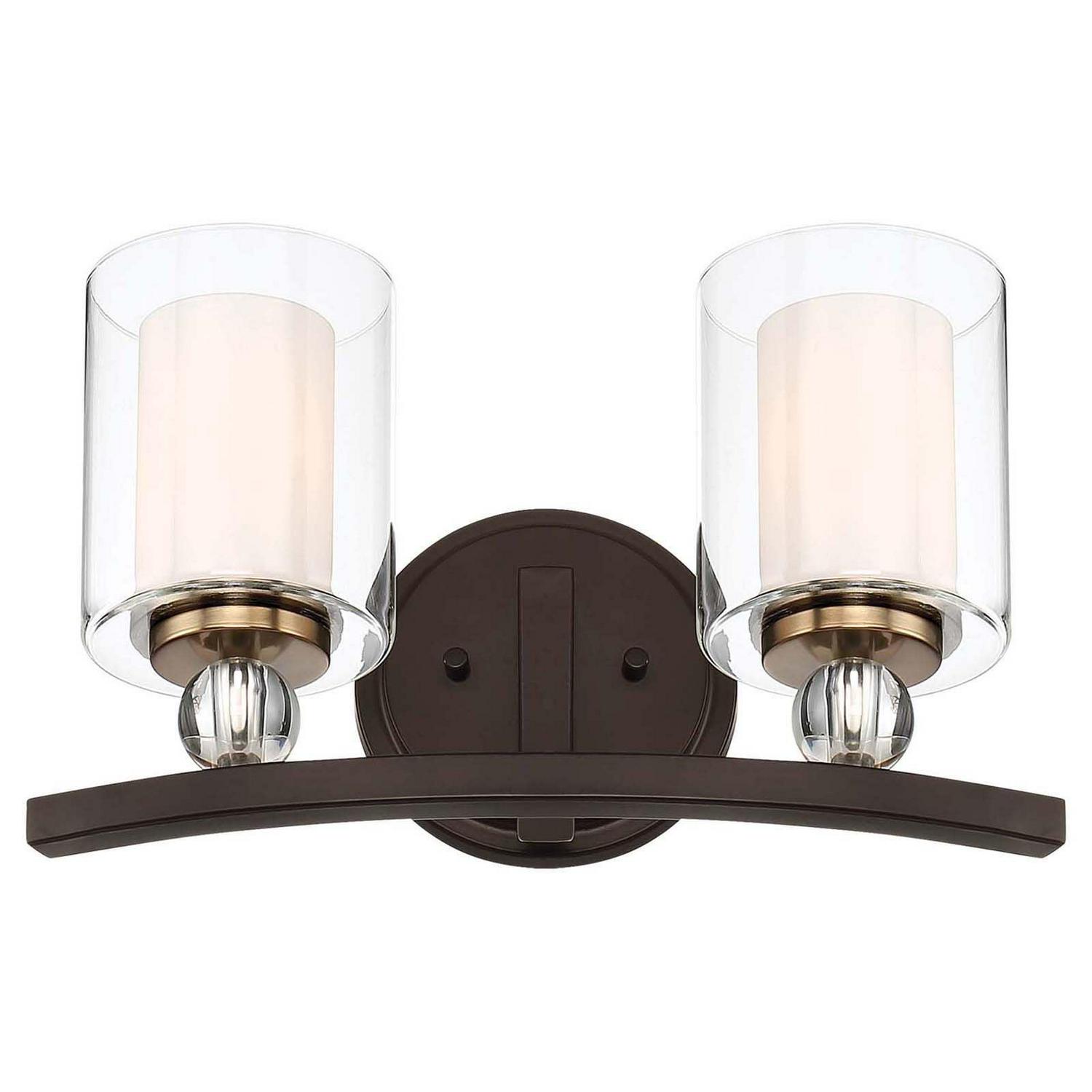 Minka Lavery-3072-416-Collection: Studio 5, Material: Glass, Finish Color: Painted Bronze/Natural Brush, Width: 15.5″, Height: 9″, Length: 15.5″, Depth: 6.25″, Backplate Width: 6.13″, Backplate Length: 0.75″, Lamping Type: Incandescent, Number Of Bulbs: 2, Wattage: 100 Watts, Dimmable: Yes, Moisture Rating: Dry Rated, Desc: ,-Studio 5 – 2 Light Bath Vanity in Transitional Style – 9 inches tall by 15.5 inches wide-Painted Bronze/Natural Brush Finish