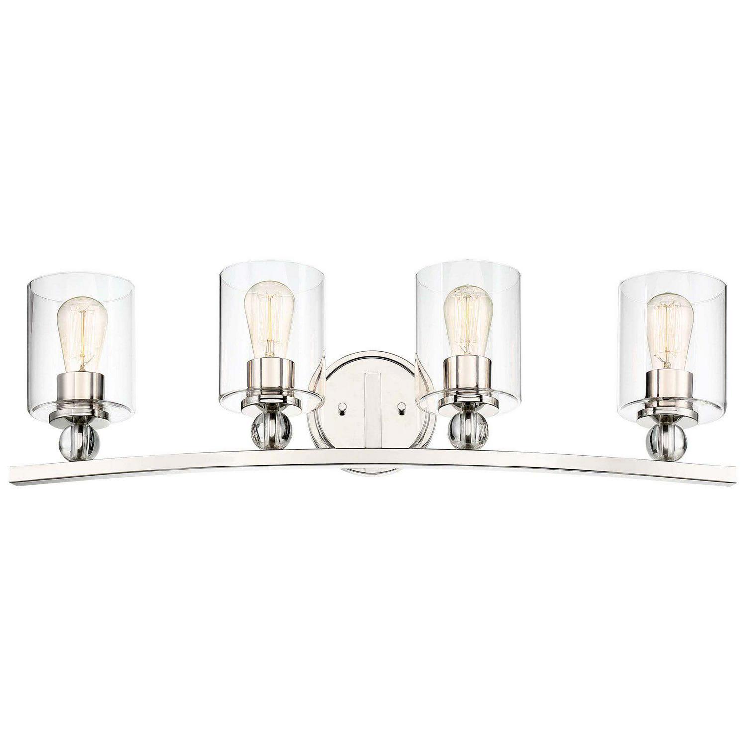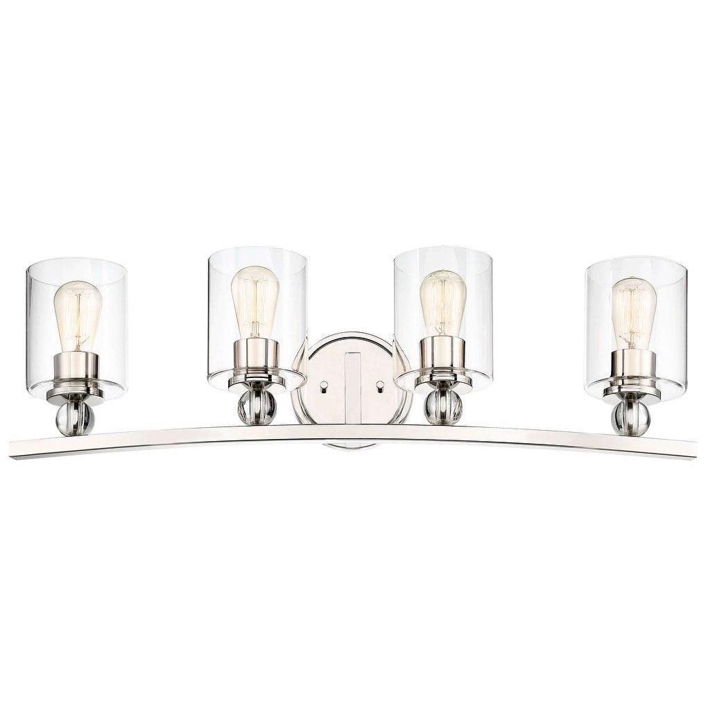 Minka Lavery-3080-613-Collection: Studio 5, Material: Glass, Finish Color: Polished Nickel, Width: 33″, Height: 9″, Depth: 8″, Backplate Width: 6.13″, Backplate Length: 0.75″, Lamping Type: Incandescent, Number Of Bulbs: 4, Wattage: 60 Watts, Dimmable: Yes, Moisture Rating: Dry Rated, Desc: ,-Studio 5 – 4 Light Bath Vanity in Transitional Style – 9 inches tall by 33 inches wide-Polished Nickel Finish
