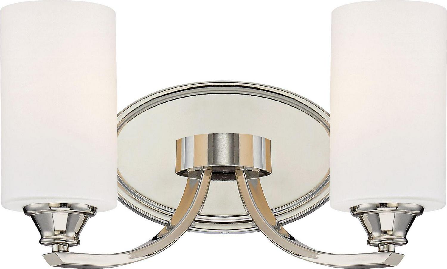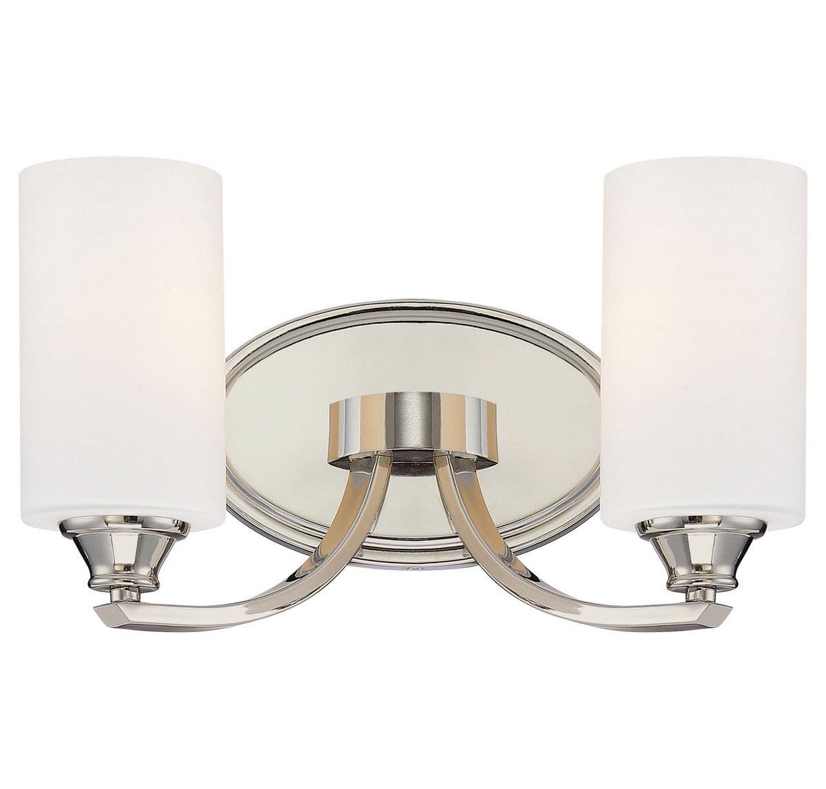 Minka Lavery-3982-613-Collection: Tilbury, Material: Steel, Finish Color: Polished Nickel, Width: 14″, Height: 7.75″, Depth: 6″, Backplate Width: 8″, Backplate Length: 5″, Lamping Type: Incandescent, Number Of Bulbs: 2, Wattage: 100 Watts, Dimmable: Yes, Moisture Rating: Dry Rated, Desc: Mounting Direction: Reversible / Shade Included: TRUE. ,-Tilbury – 2 Light Transitional Bath Vanity in Transitional Style – 7.75 inches tall by 14 inches wide
