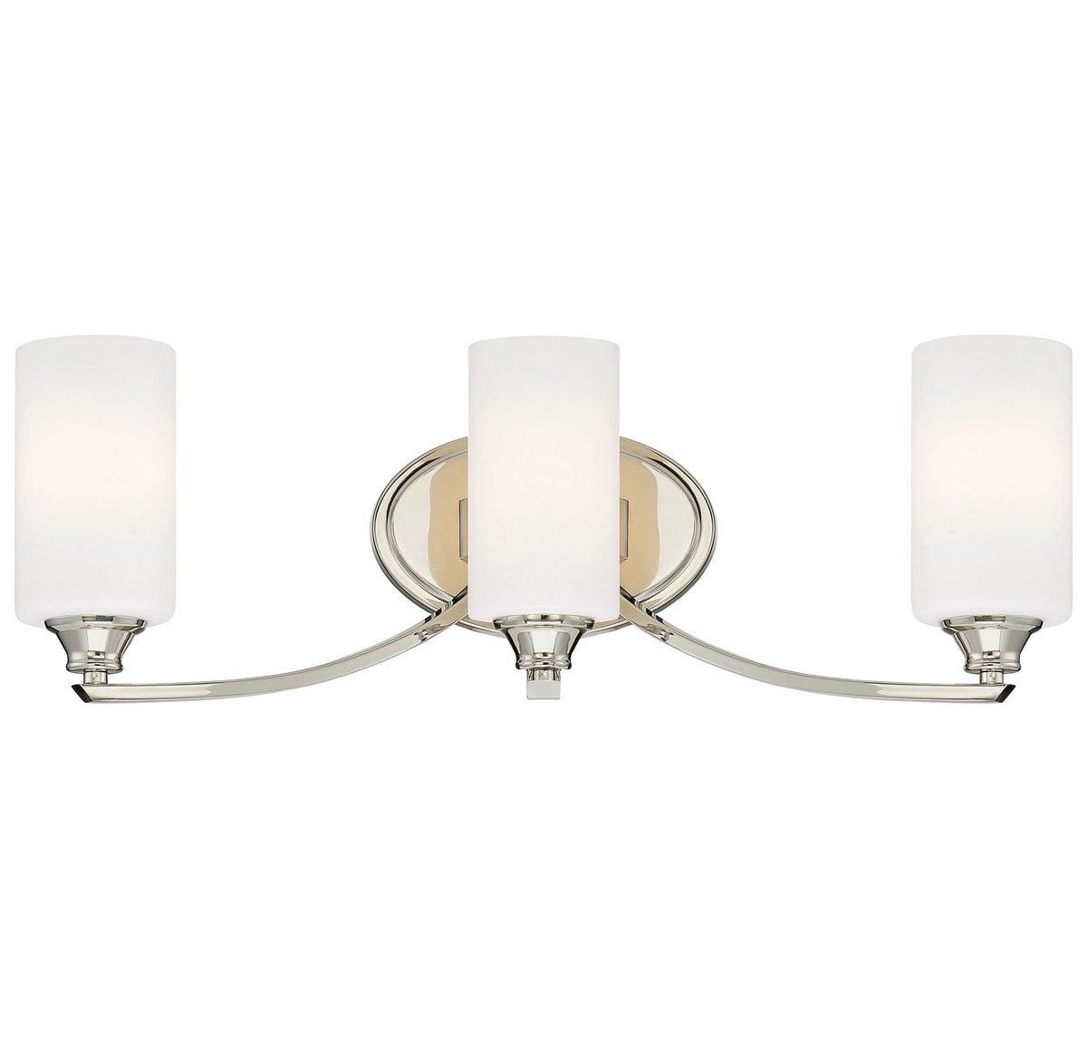 Minka Lavery-3983-613-Collection: Tilbury, Material: Steel, Finish Color: Polished Nickel, Width: 24.25″, Height: 7.75″, Depth: 6″, Backplate Width: 8″, Backplate Length: 5″, Lamping Type: Incandescent, Number Of Bulbs: 3, Wattage: 100 Watts, Dimmable: Yes, Moisture Rating: Dry Rated, Desc: Mounting Direction: Reversible / Shade Included: TRUE. ,-Tilbury – 3 Light Transitional Bath Vanity in Transitional Style – 7.75 inches tall by 24.25 inches wide