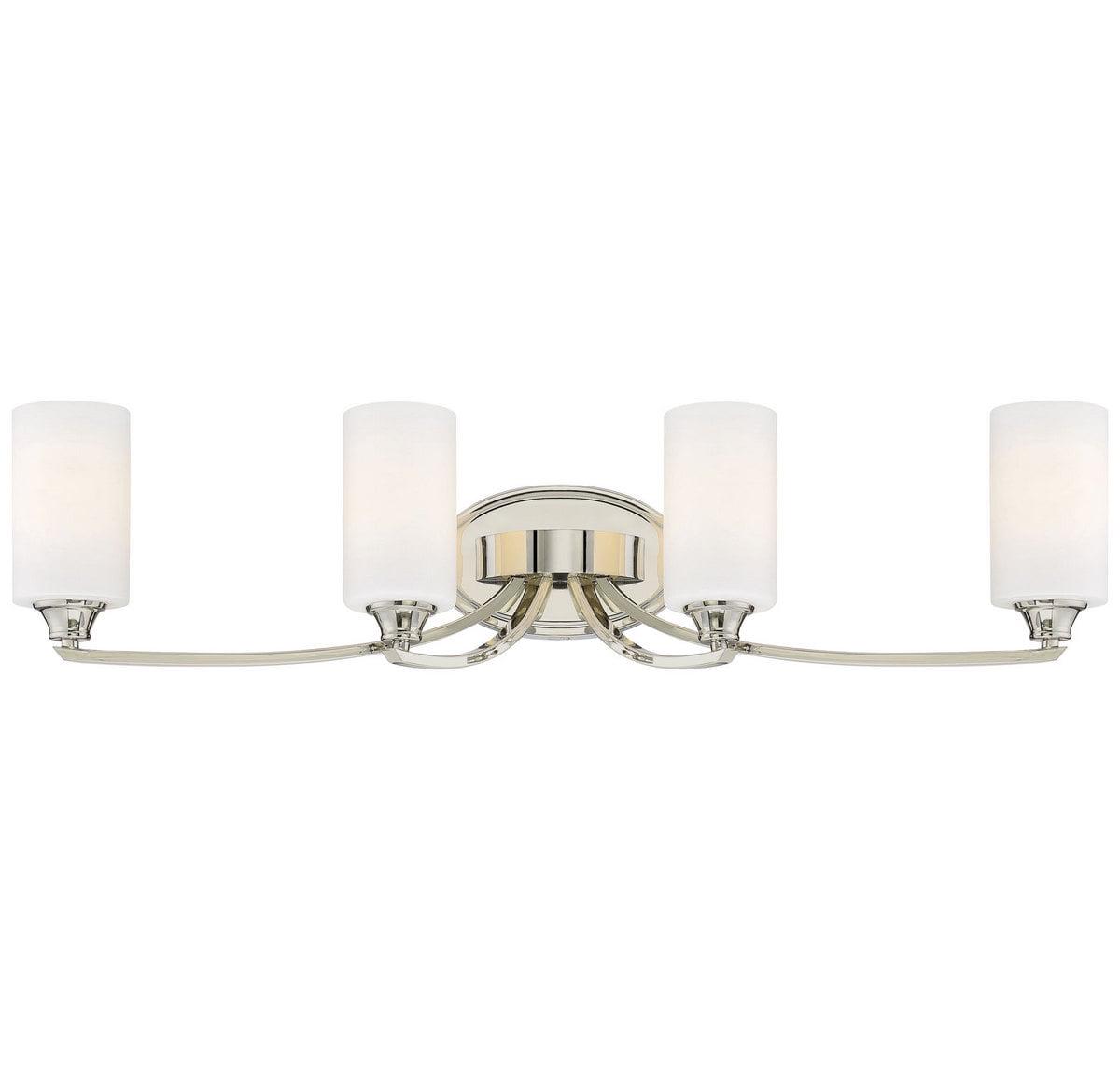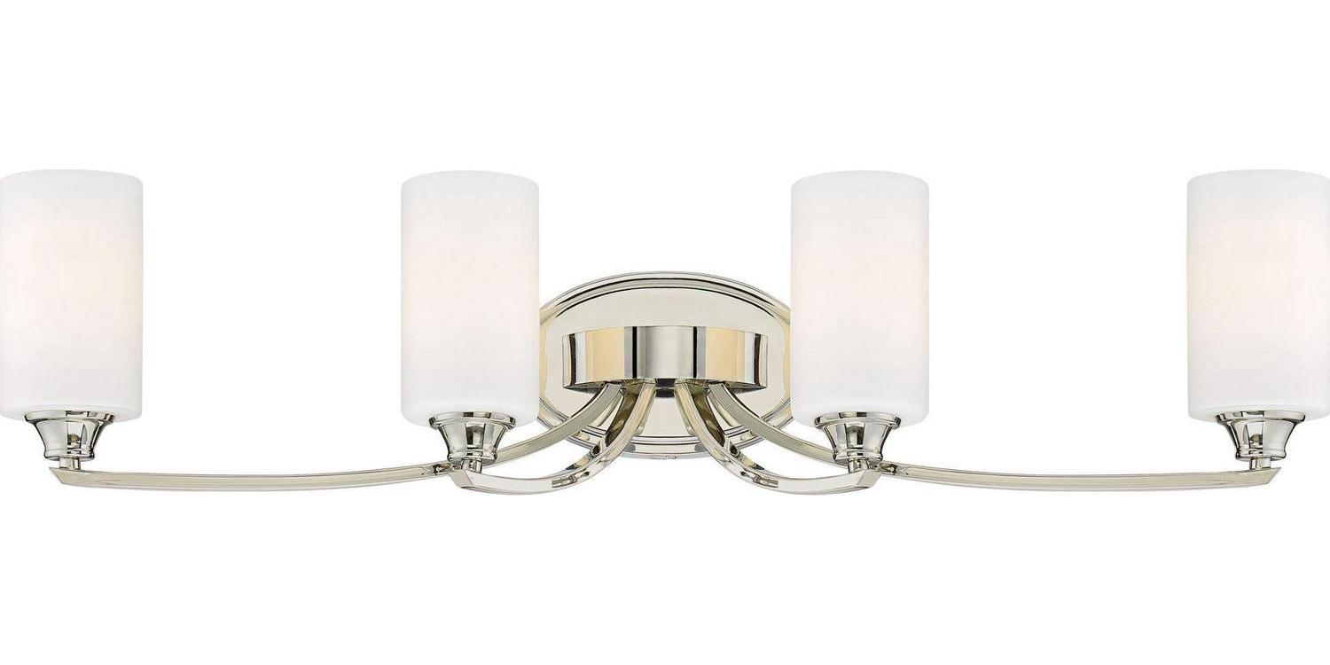 Minka Lavery-3984-613-Collection: Tilbury, Material: Steel, Finish Color: Polished Nickel, Width: 33.25″, Height: 7.75″, Depth: 6″, Backplate Width: 8″, Backplate Length: 5″, Lamping Type: Incandescent, Number Of Bulbs: 4, Wattage: 100 Watts, Dimmable: Yes, Moisture Rating: Dry Rated, Desc: Mounting Direction: Reversible / Shade Included: TRUE. ,-Tilbury – 4 Light Transitional Bath Vanity in Transitional Style – 7.75 inches tall by 33.25 inches wide