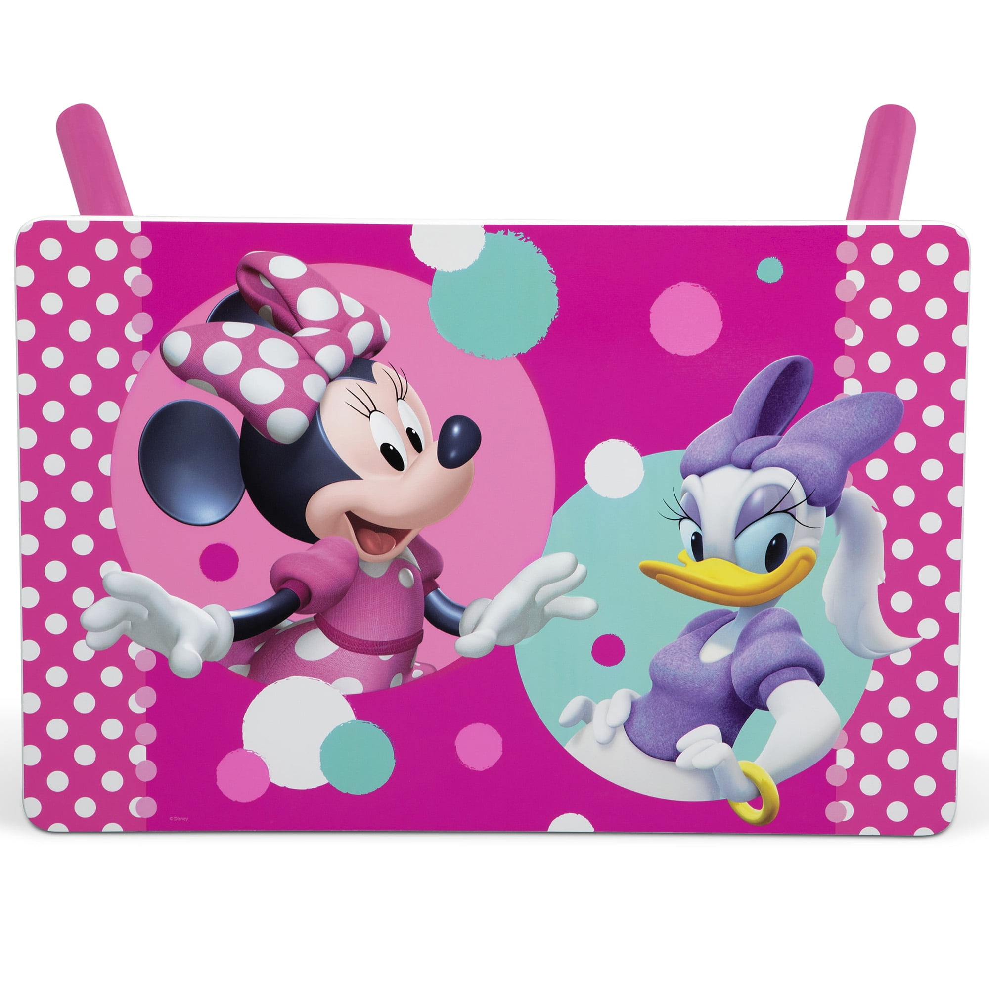 4-Piece Playroom Solution Set by Delta Children includes a pink Table and 2 Chairs and 6-Bin Toy Organizer TABLE AND 2 CHAIR SET RECOMMENDED USE: For toddlers and kids ages 2+ | Each chair holds up to 50 lbs. DURABLE CONSTRUCTION: Made of engineered wood and solid wood | Scratch-resistant finish protects the table’s colorful graphics | Easy assembly SAFEST OPTION: Meets or exceeds all safety standards set by the CPSC SIZE: Assembled dimensions: 24”W x 20”D x 17.5”H DESIGN & STORE 6 BIN TOY STORAGE ORGANIZER AGE RANGE: Recommended for ages 3+ SAFE DESIGN: Bin meets or exceeds all safety standards set by the CPSC FOR MINNIE MOUSE FANS: Toy bin features colorful graphics of Minnie and Daisy Duck | Will encourage your child to keep their space neat and tidy REUSABLE STICKERS: Kids will love arranging the reusable vinyl cling stickers to the sides of this organizer to create a new story every time they play TONS OF STORAGE: Toy Bin has 6 bins in varying sizes to fit a wide variety of toys, from small to large DURABLE CONSTRUCTION: Made of engineered wood, solid wood and fabric SIZE: Assembled dimensions: 24.61”L x 11.81”W x 26.57”H | 3 medium bins: 7.75”L x 9.5”W x 5”H, 2 large bins: 11.6”L x 9.5”W x 5”H, 1 extra-large bin: 23.5”L x 9.5”W x 9.5”H | Easy assembly