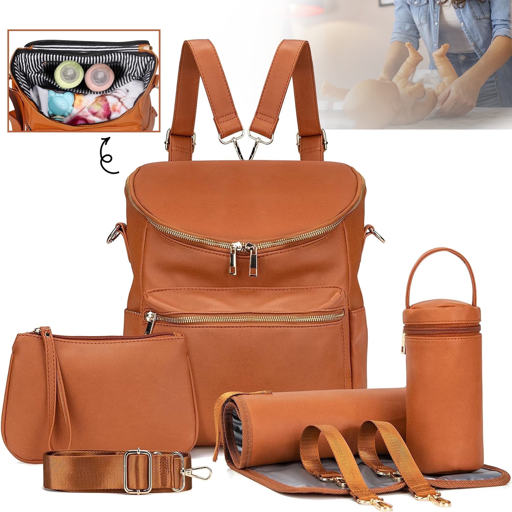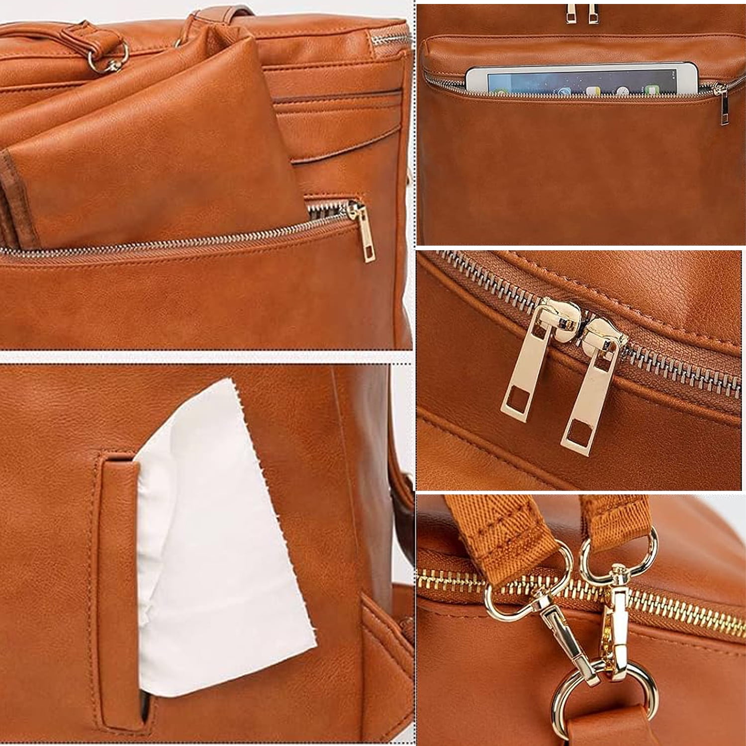 [Fashion diaper bags] This diaper bag has a fashion color scheme and gold zippers that elevate the look. This is not just a “mom bag”, it’s right for both men and women and appropriate for all occasions. Featuring a trendy and structured design, this diaper back pack satisfies all of the needs of parents on-the-go and also makes a great baby shower gift. [Must have diaper bag] What you get: 1*Diaper bag, 1*Insulated bottle bag, 1*sundry bag, 1*waterproof changing pad, 1*Shoulder Strap, 2*Stroller straps.The bag also can be worn as a shoulder bag or backpack! [ Satisfied Service] We hope that you will be satisfied with diaper bags, but if for some you are not satisfied with your purchase, or you have any problem with the order, please kindly let us know, we are glad to do you a favor for your question, reply will be done within 48 hours and free exchange for wrong item shipped or item damaged.