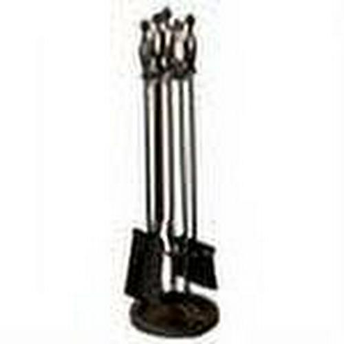 – Set includes stand, poker, brush, shovel, and tongs