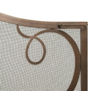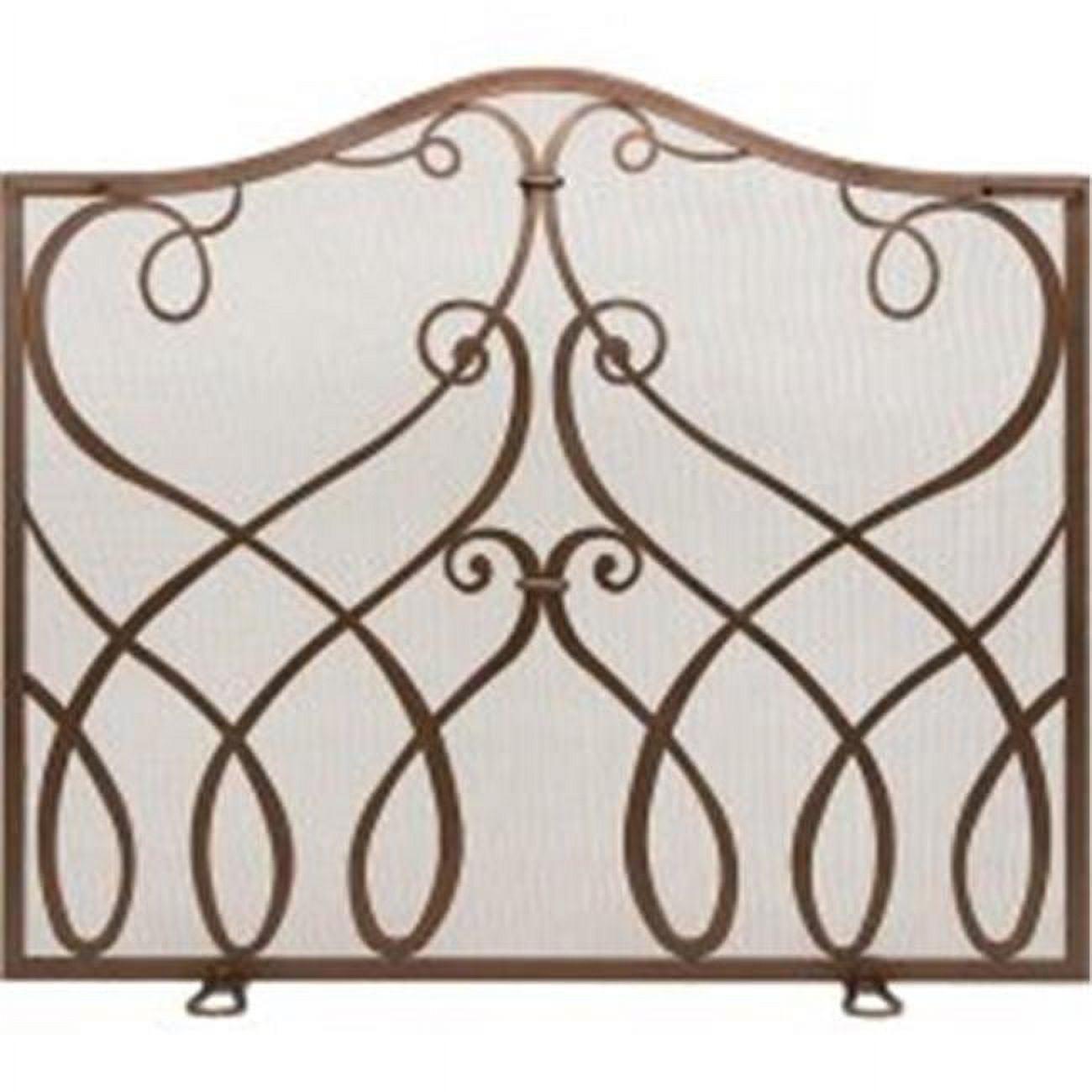 Minuteman International is the parent company of ACHLA Designs which caters to the home and garden industry. ACHLA Designs, a Garden Accessories company, emphasizes unique, handforged, wrought iron, European furnishings for the home and garden. Items range from small hooks and brackets to large pavilions and arbors. We also offer birdbaths, birding & garden pole systems, trellises, statuary, composting products, and wood and metal furniture. In 2004, ACHLA Designs introduced the Williamsburg Collection, offering reproductions as well as 17th and 18th century inspired designs for the contemporary home. ACHLA Designs continues to add beautiful and unique items year after year, resulting in an unusually large product line. Furnish your hearth with accessories that not only protect and preserve your hearth but also add a decorative flair and sense of style. Handmade in Europe using old world forging methods the Small Cipher Flat Screen features decorative flowing lines framed in by a durable steel frame. Designed to protect your floor against rolling logs and stray embers the Small Cipher Flat Screen is finished in an attractive long wearing Roman Bronze Powdercoat paint and Measures 38 Wide x 34 High to top of Arch and 31 side Height; Feet- 11 Wide.- SKU: TWST3314