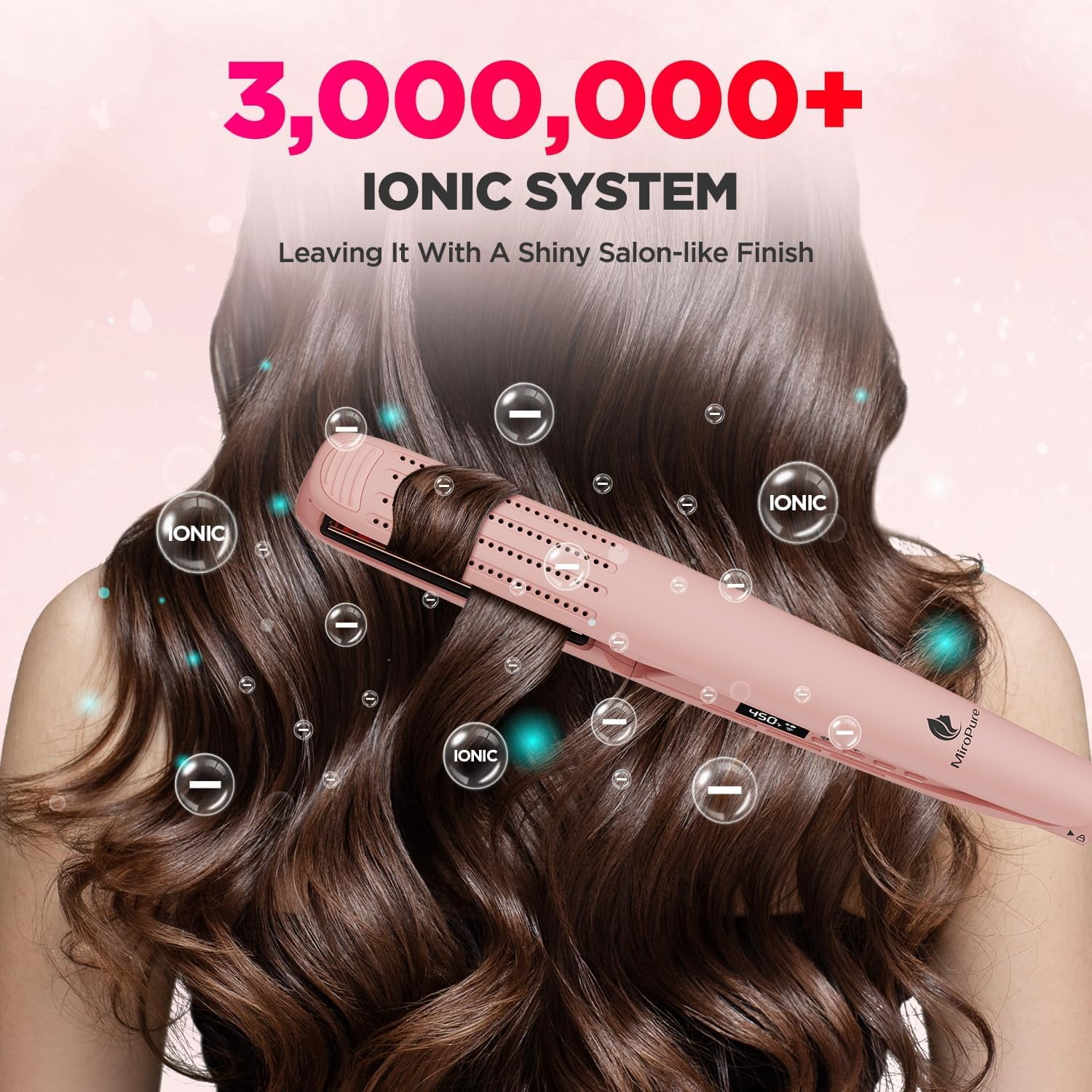 MiroPure Titanium Professional Flat Iron Hair Straightener and Curler 2 in 1 for Long Hair, Pink
