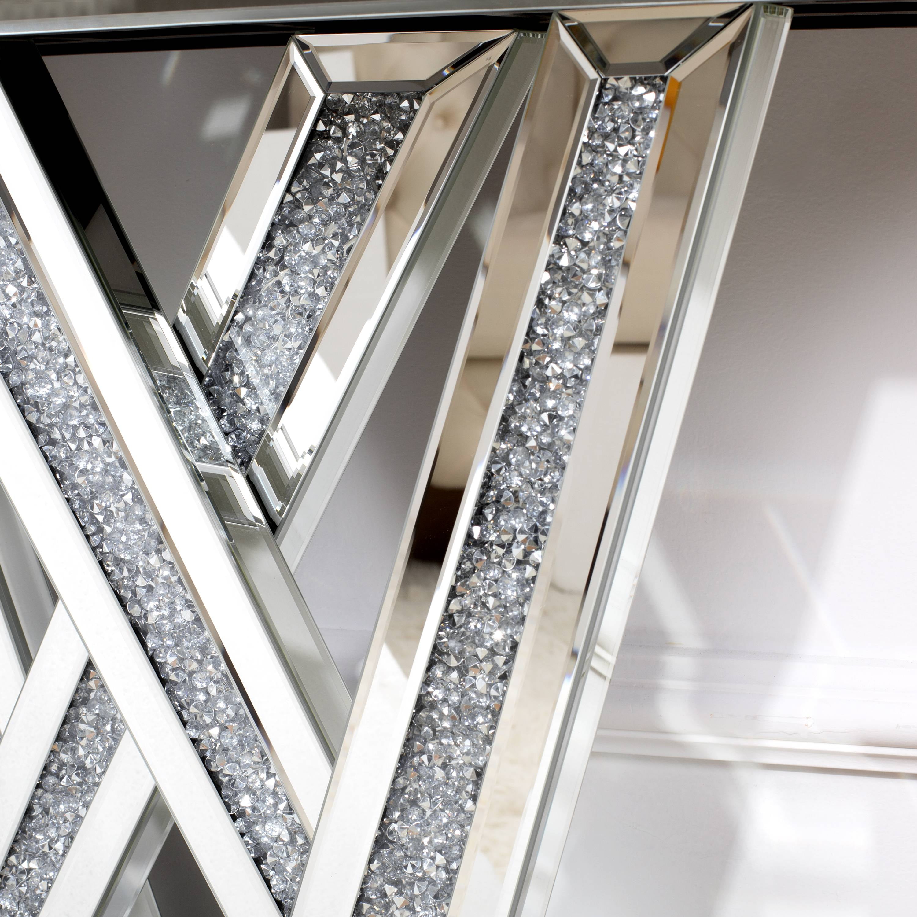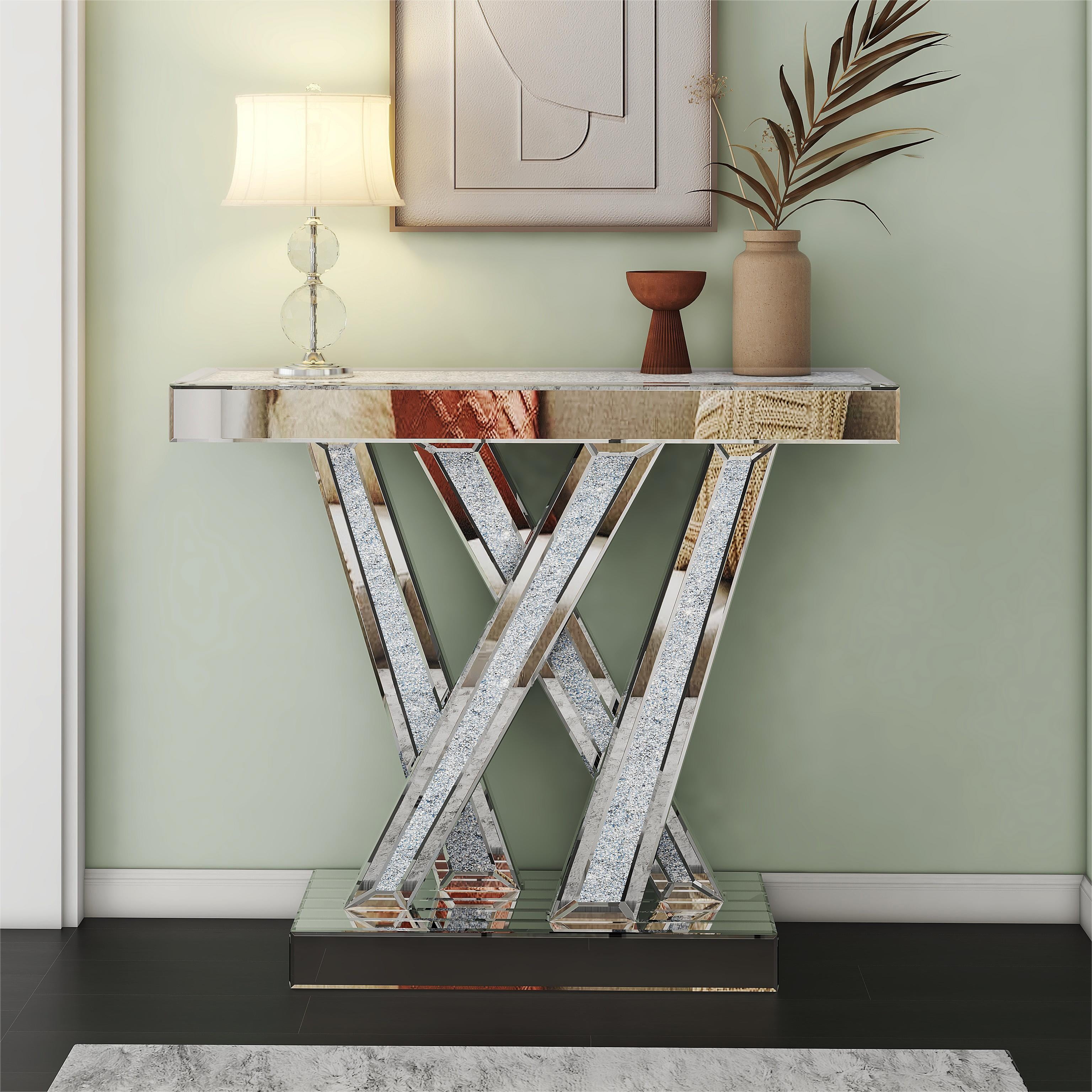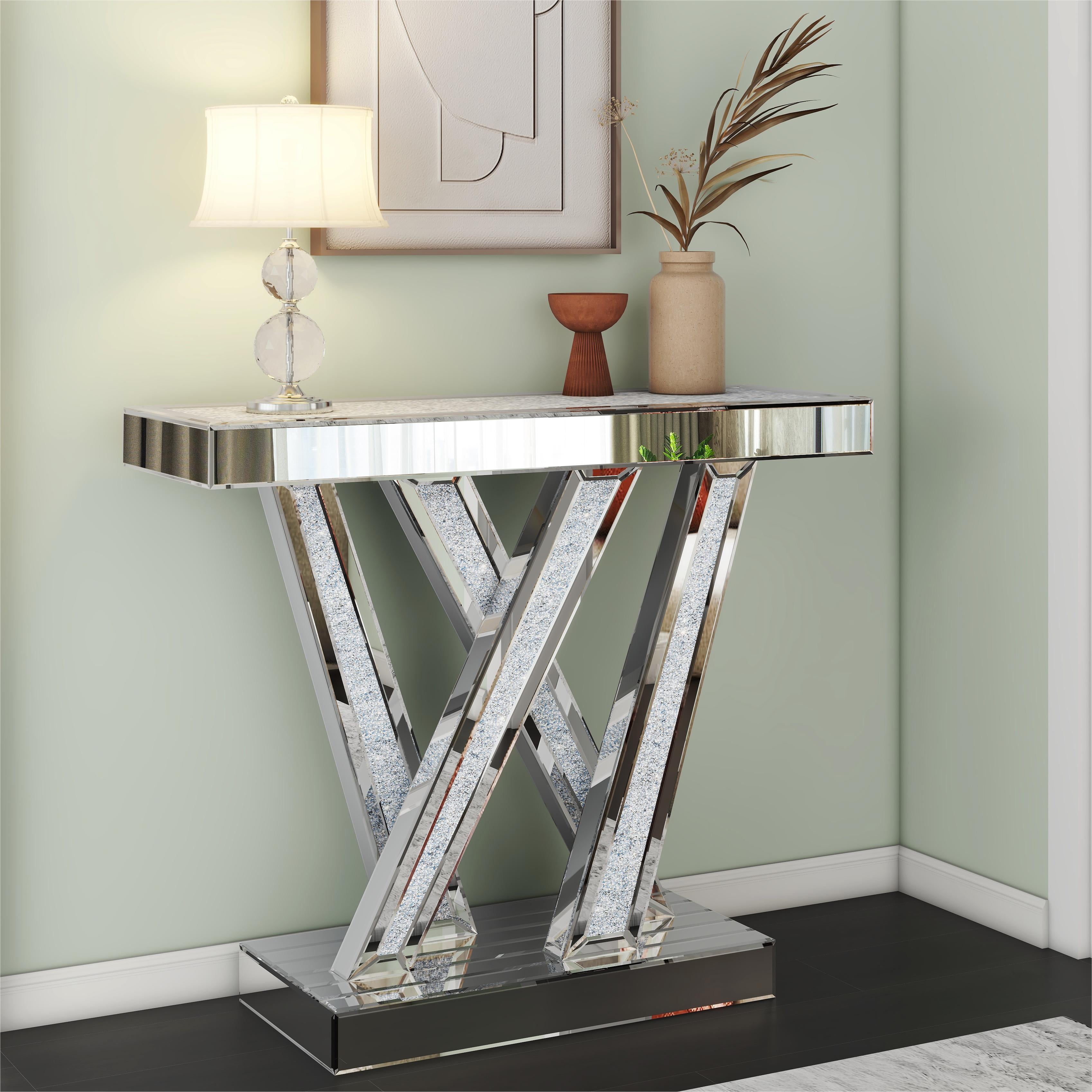 SHYFOY Mirrored Glass Console Table Glam Silver Entryway Table with Diamond for Living Room