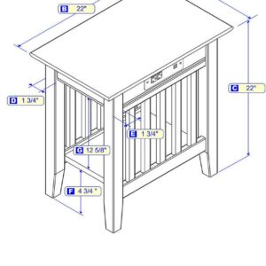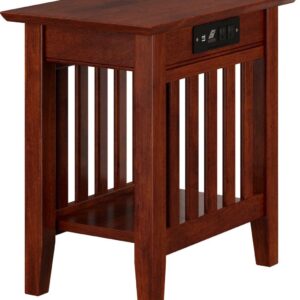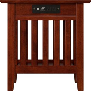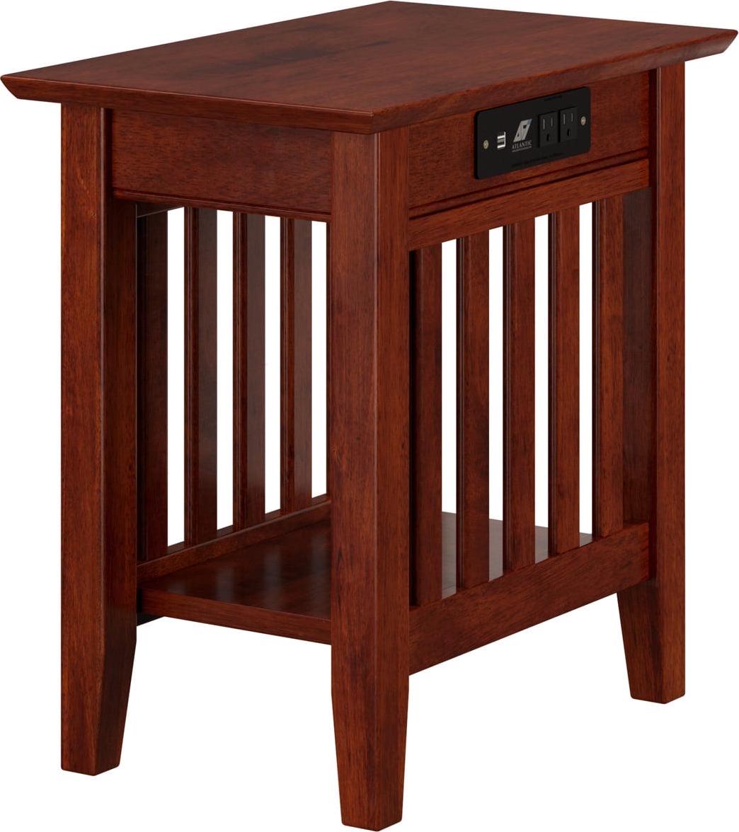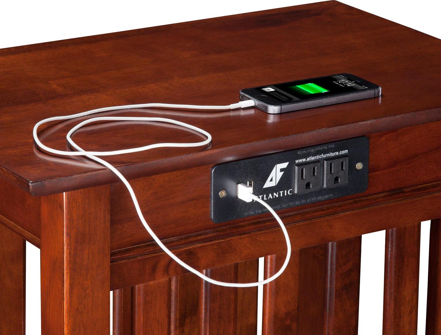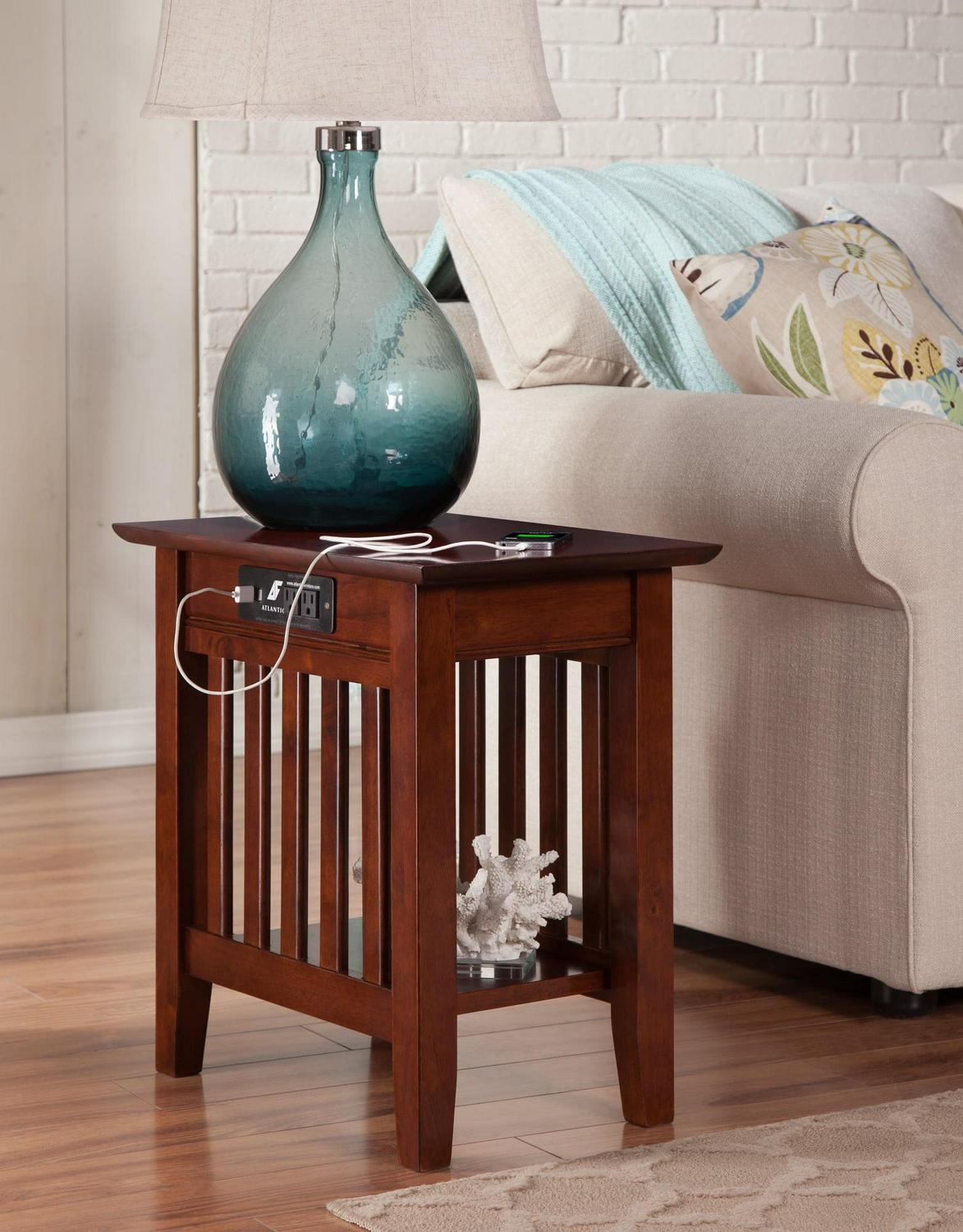 Mission Chair Side Table with Charging Station in Walnut or Caramel