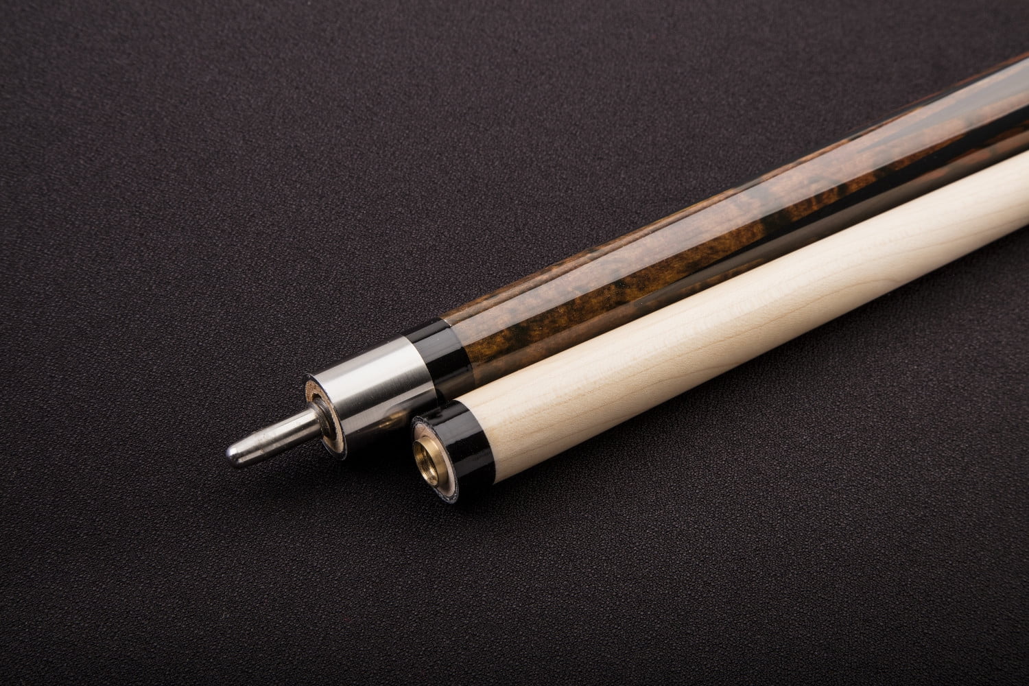 The Mizerak 58-inch, Two Piece Premium Maple Cue is made with tri-carbon composite technology for an extremely solid strike with a sensitive feel. The cue features a 13mm fiber ferrule with 8-layer leather tip, 25mm stainless steel joint with turbo-lock technology and pressed Irish linen wrap. 58 in TriCarbon Composite creates a sensitive feel–but will not warp