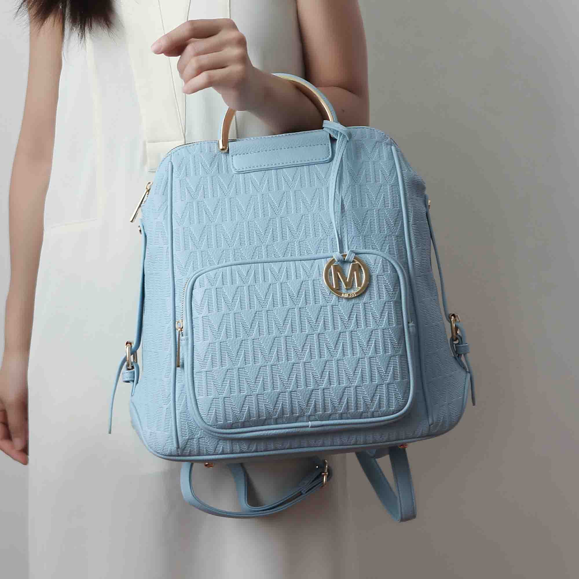 Elevate your style with our Stylish Backpack, crafted from luxurious and sustainable high-quality vegan leather. Featuring opulent gold-tone embellishments and a convenient zip-top closure, it offers a spacious interior with organized compartments and a front zippered pocket for quick access.