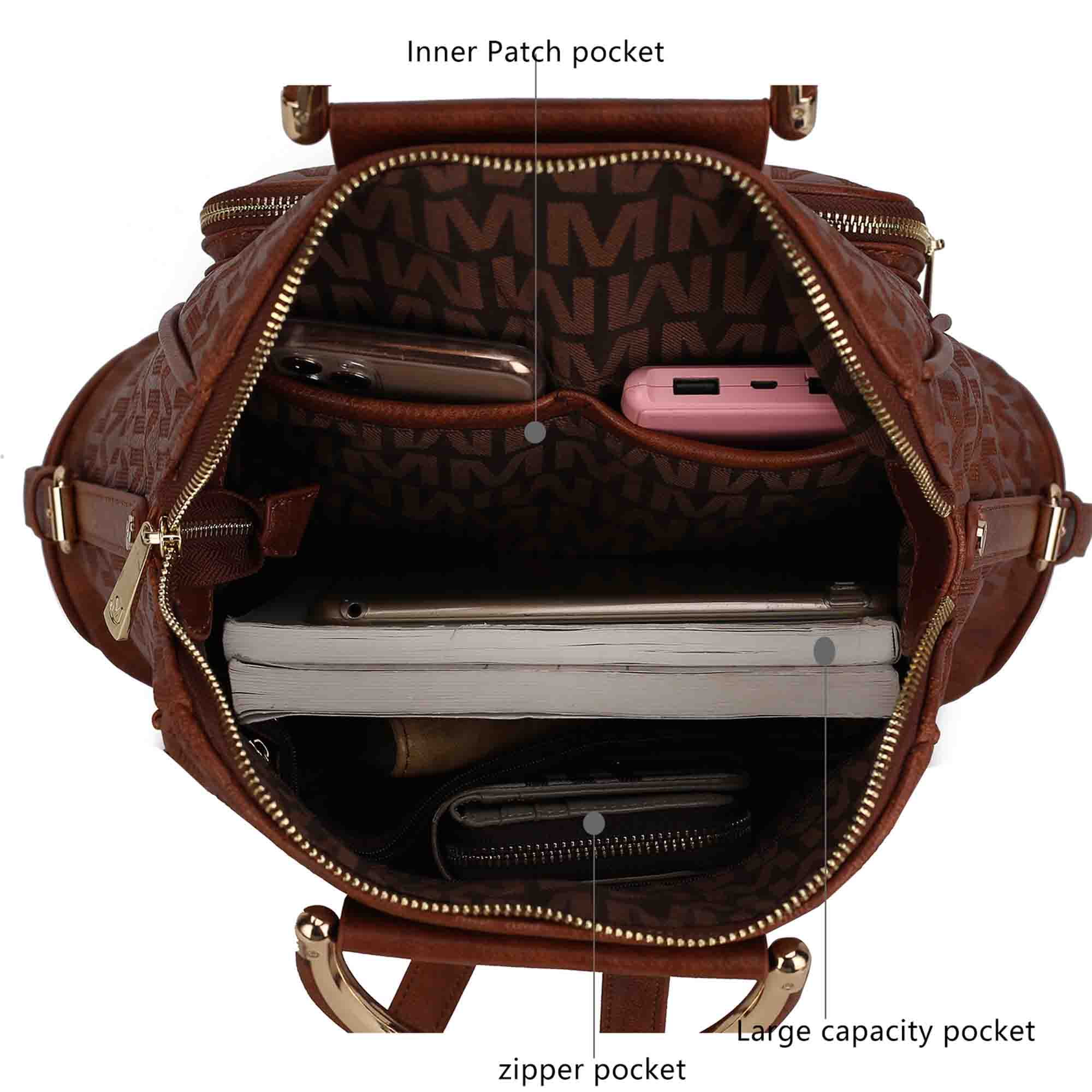 Pockets: Interior features a spacious compartment with two zippered pockets and slip in pockets. Exterior features front zippered pocket. Measurements: 16 in H x 13 in L x 7.5 in D Handle Drop- 2.5 in Adjustable shoulder strap, extends to 29 in Zip top closure backpacks for girls This product is not affiliated with Michael Kors.