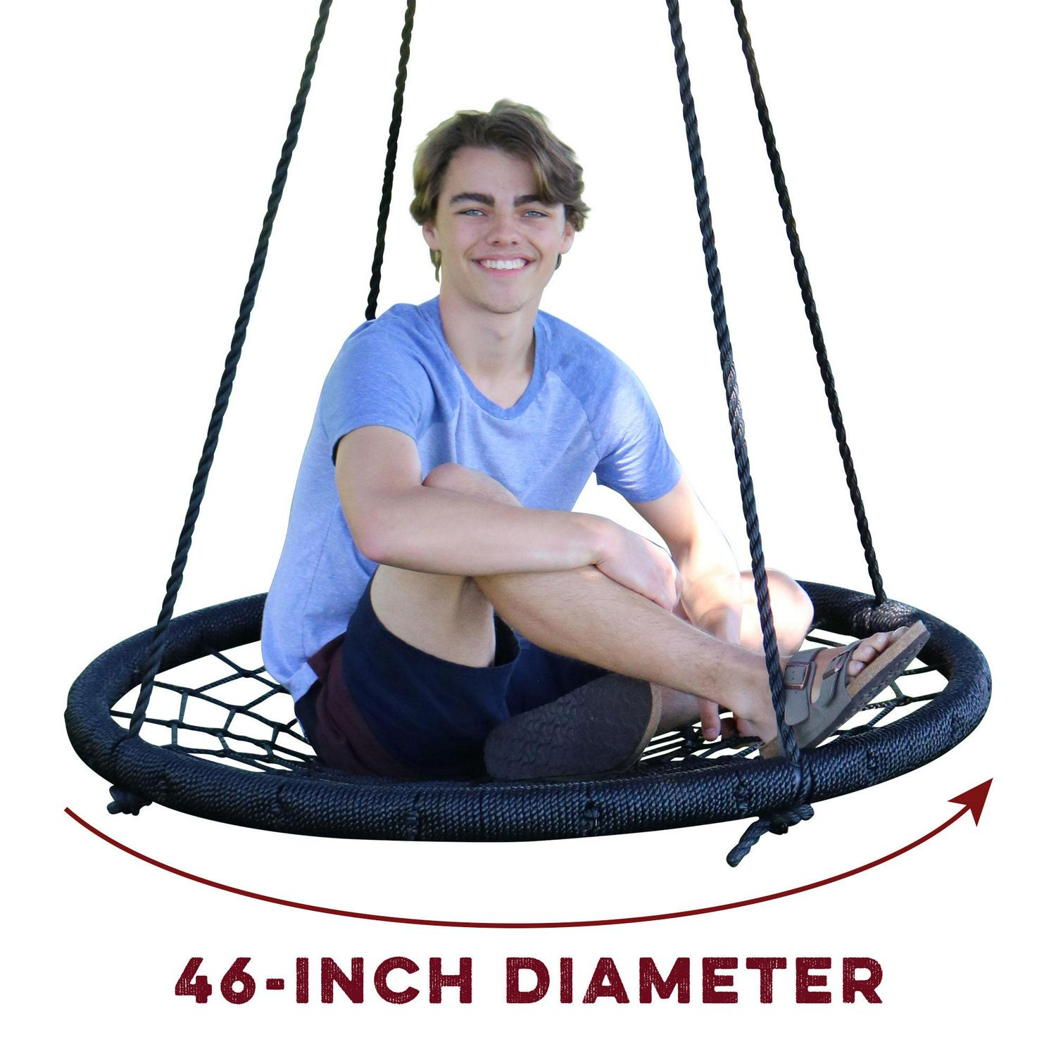 The Web Riderz 46 Web Swing will quickly become the favorite play yard hang out. Kids and those that are kids at heart can enjoy countless hours of outdoor fun soaring, swinging and spinning on our giant 46 web rope swing. You can count on this swing delivering long lasting value for seasons of imaginative play and relaxation on its secure taut woven platform with UV-resistant polyethylene rope construction and Rhinoarmour superior corrosion protected steel tube frame. Hang from two points for a traditional back-and-forth swing experience or from a single point to spin merry-go-round style.