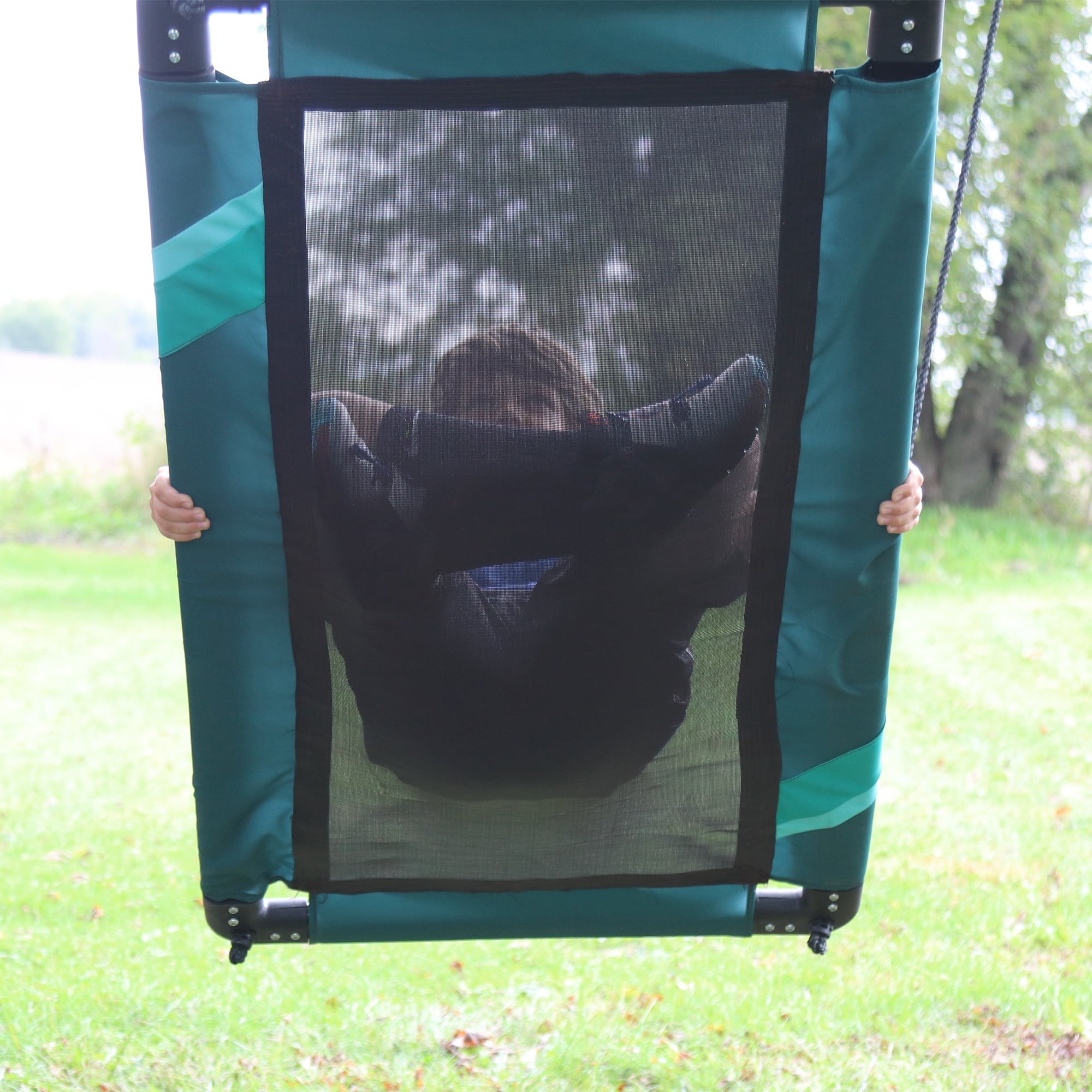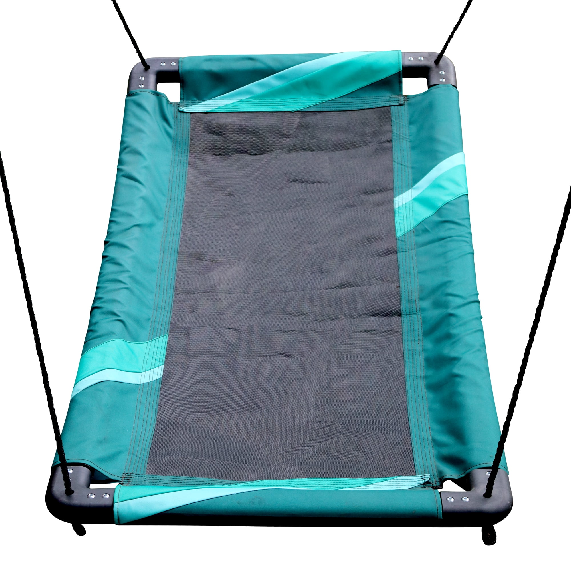 On the Rainbow Gliderz Stripe Swing (60″) kids, teens and adults will enjoy the sensation of gliding through the air with the greatest of ease due to a supportive mat platform and engineered smooth swinging action. Easy to assemble and universally designed to hang in your favorite outdoor play space it will surely be the neighborhood hot spot. Multiple riders can climb aboard for a great adventure or one can relax and soar solo. Simple and quick assembly. Easy to install 4″ monster steel spring clips and adjustable nylon hanging ropes for immediate use. Riders ages 5 and over will enjoy gliding for seasons to come in your backyard playground, swing set or favorite tree.