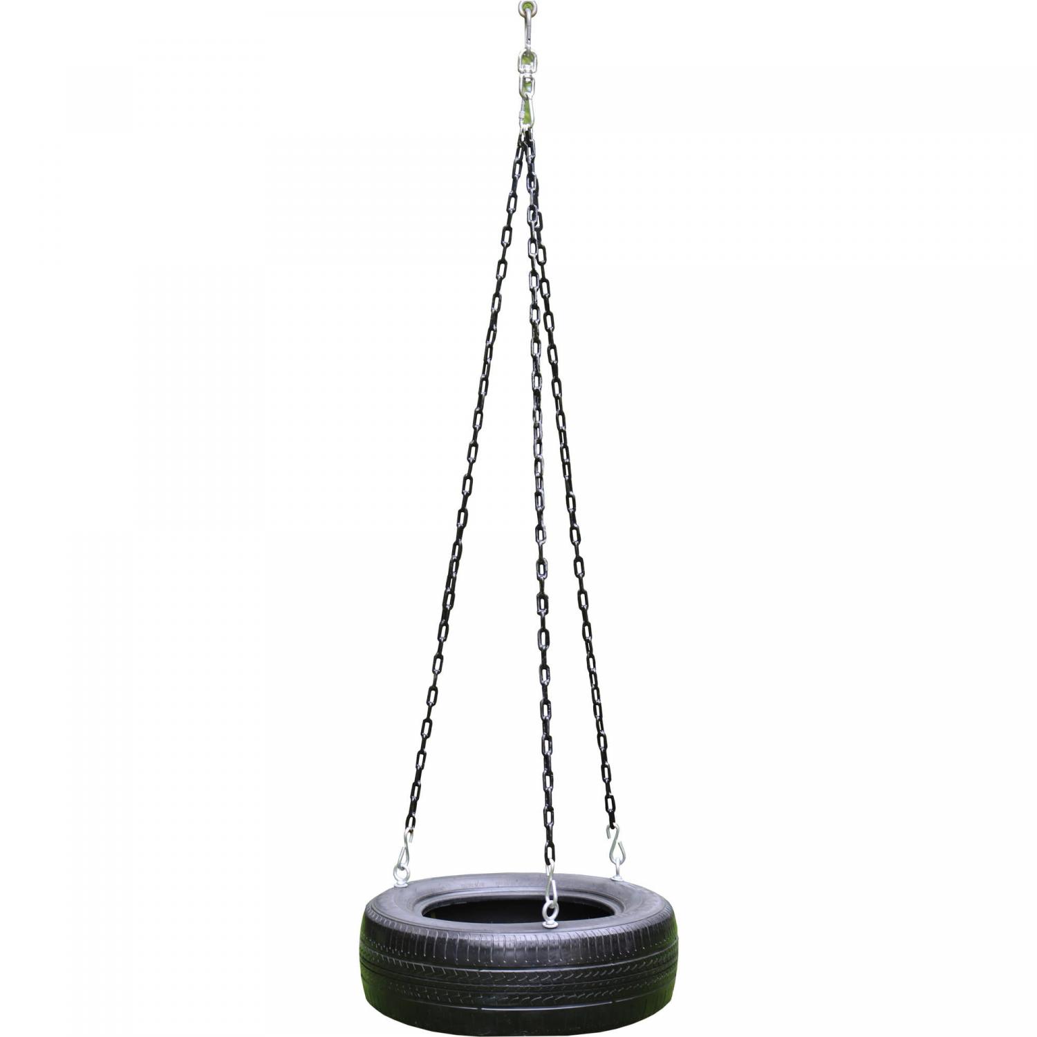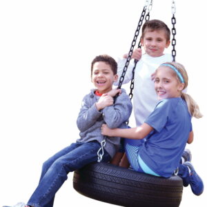 Swing and Spin. Spin and Swing. You Decide! The Treadz Traditional Tire Swing adds a modern twist to classic tire-swing fun and is an instant hit in any backyard or play space. A 360° swivel spinner allows fast, smooth spinning and swinging that gives kids the ride of their life. Three 54″ chains allow up to three kids to enjoy the swing at once, while strategically placed PVC coating gives them a pinch-free, secure grip. Easy to install with chains and ready for immediate use. Riders ages 3 and over will enjoy swinging and spinning for seasons to come in your backyard playground, swing set or favorite tree.