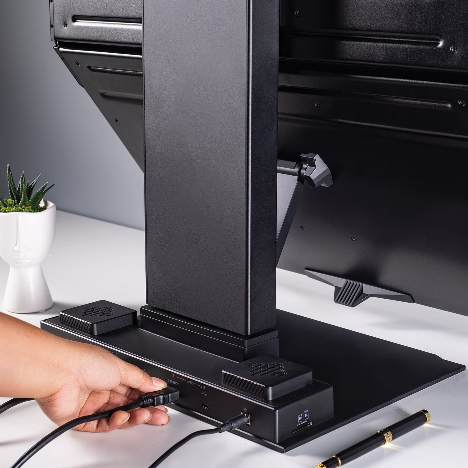 Two 23.8-In. 1080P Top And Bottom Stacked Displays Touchscreen Feature On Bottom Display Compatible With Macos, Windows, Xbox, And Playstation Infinitely Adjustable Unlike Other Dual Desktop Monitors Top Monitor Slides Up And Down, And The Bottom Monitor Pivots In And Out To Create An Angled Visual Appearance Surface Height-Adjustable Stand Displays Are Stacked From Top To Bottom, So The Display Area Is Closer To A Square Aspect Ratio, And You Can Comfortably Use Both Monitors Without Ergonomic Setbacks Capable Of 100 Watts Usb-C Pass-Through Charging Charge Your Laptop In Just 1 To 2 Hours Built-In 1080P Webcam, Powerful 3-Watt Speakers, And A Usb Docking Station