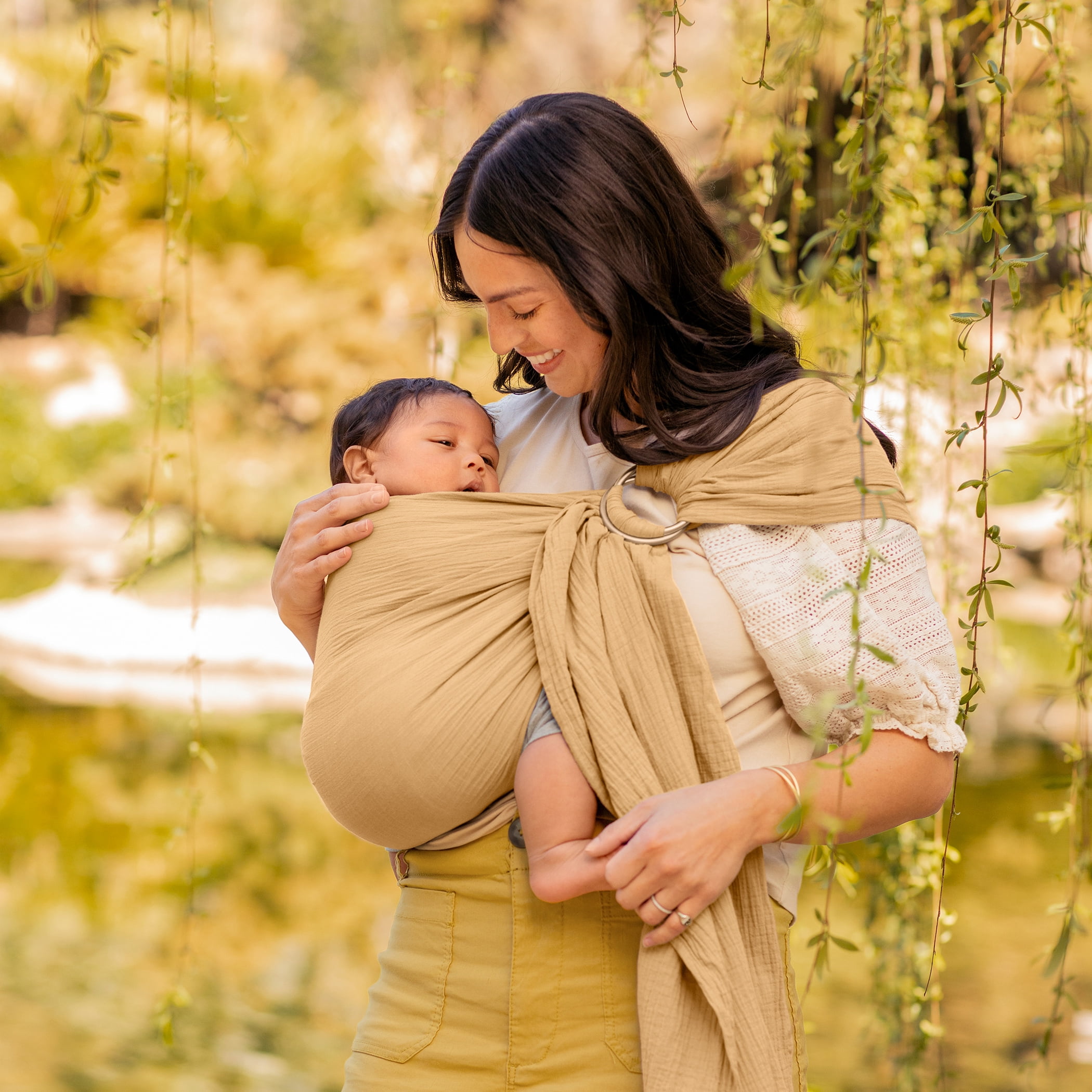 For babies 8-33 lbs Offers front and hip carrying options Soft, breathable woven cotton fabric and lightweight rings Comfortable to wear for extended periods of time Breastfeeding-friendly (just return the baby to the upright position when done) One size fits all Machine washable