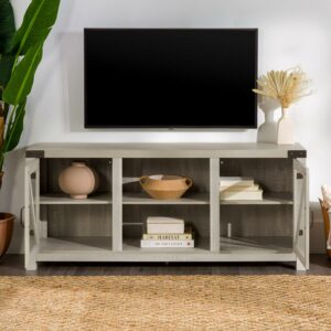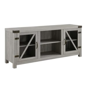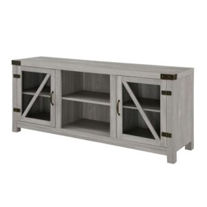 Modern Farmhouse Glass Door TV Stand for TVs up to 65″, Stone Grey: