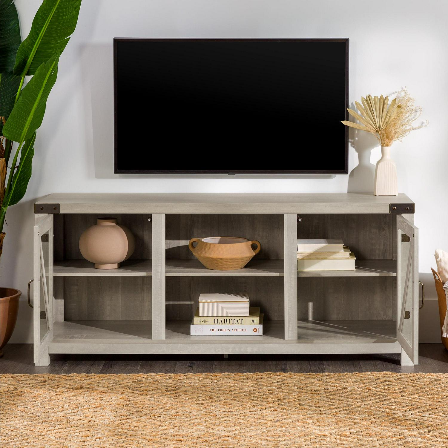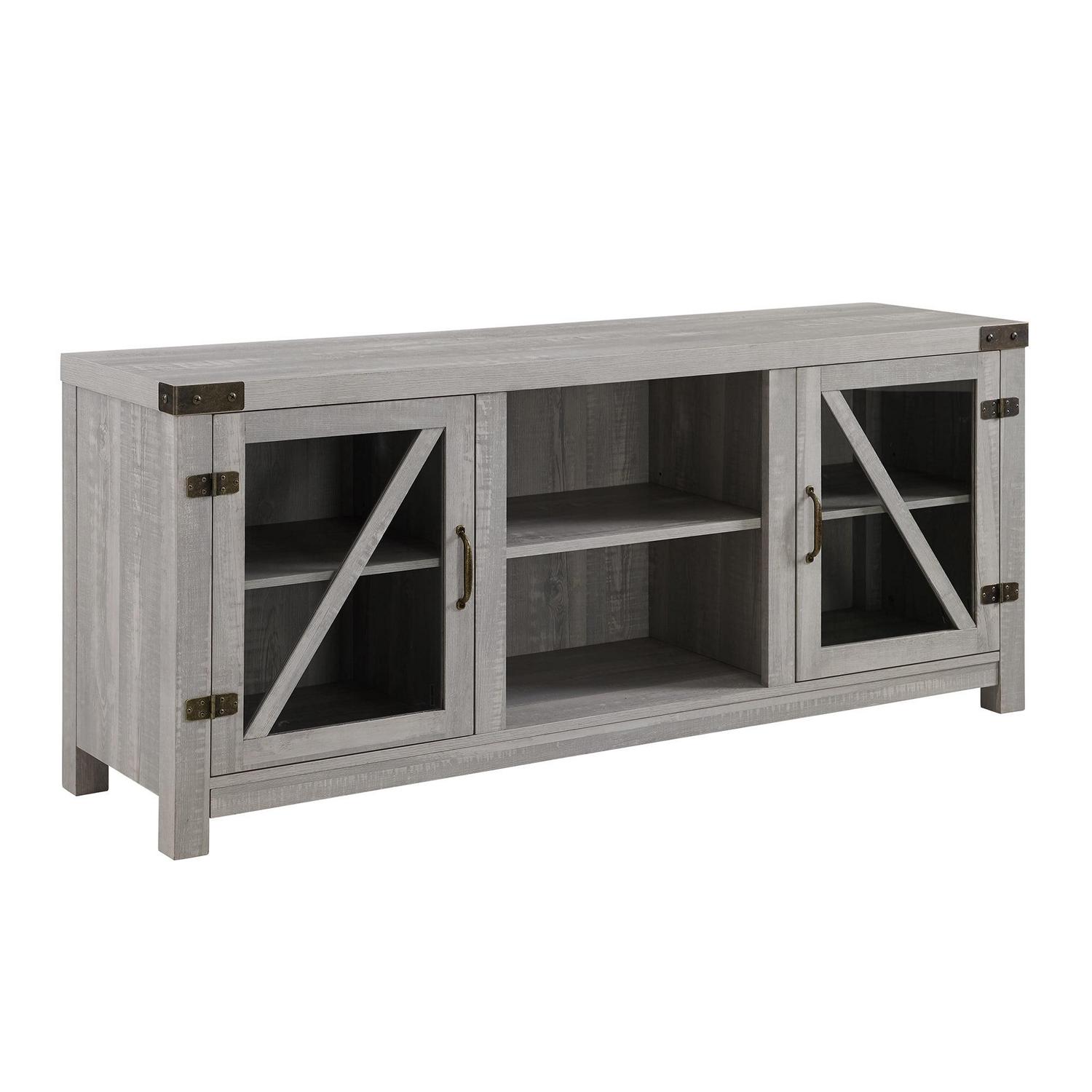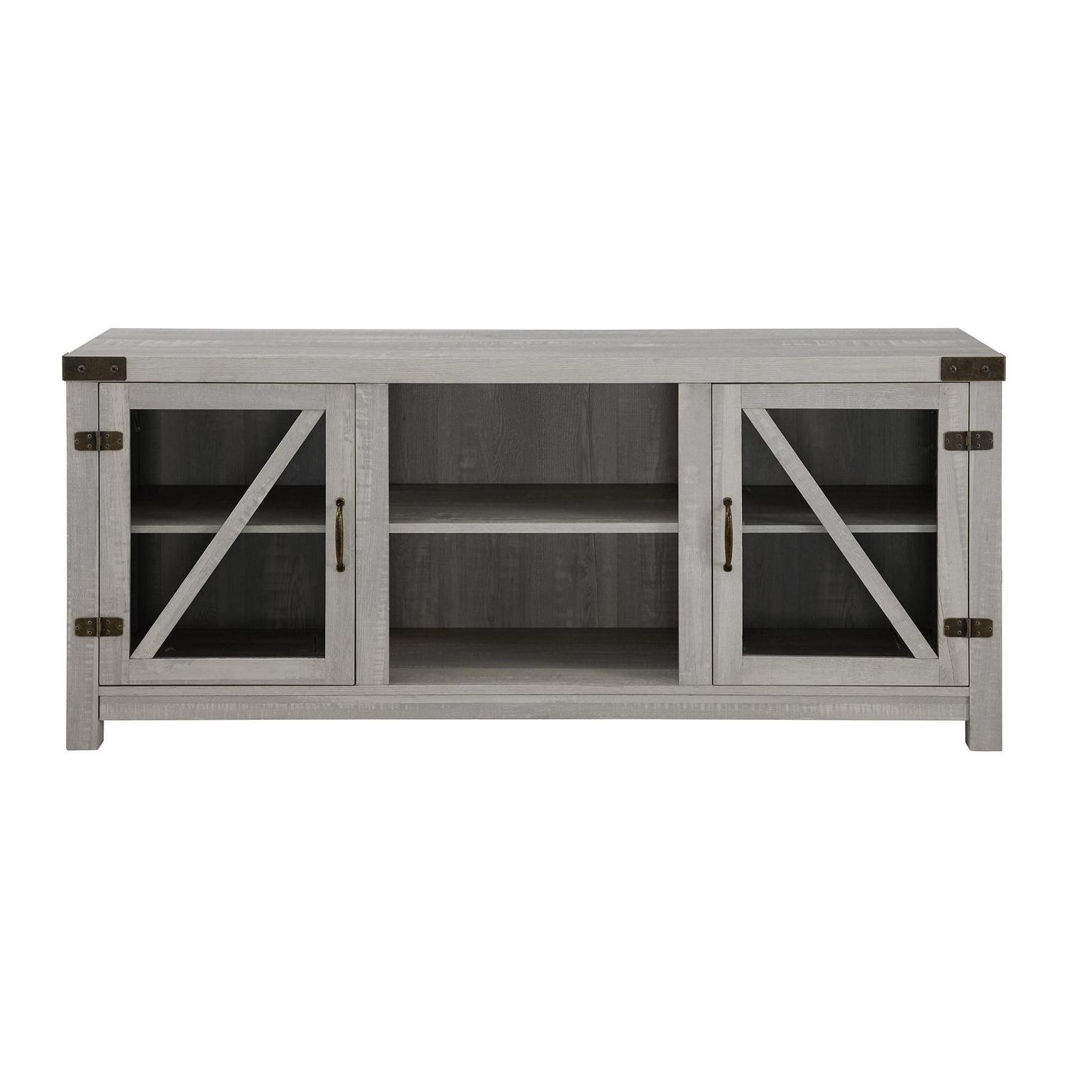 Modern Farmhouse Glass Door TV Stand for TVs up to 65 , Stone Grey