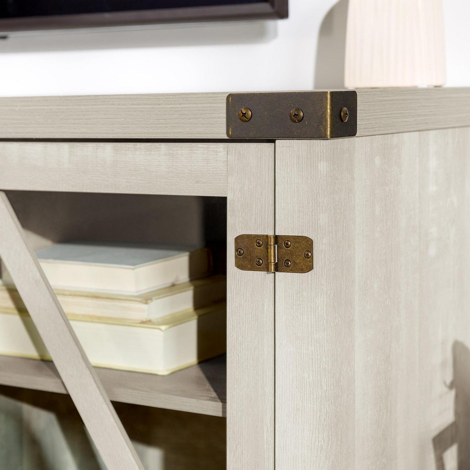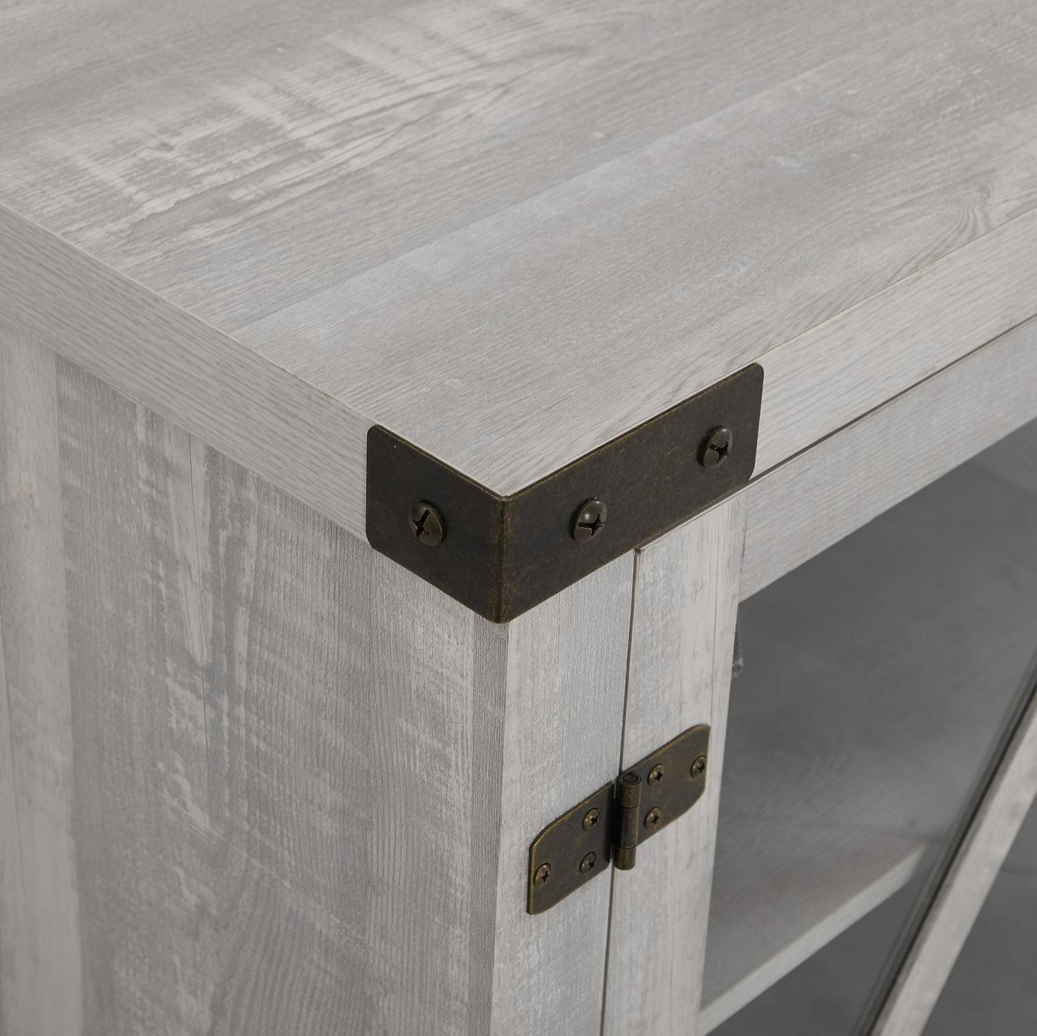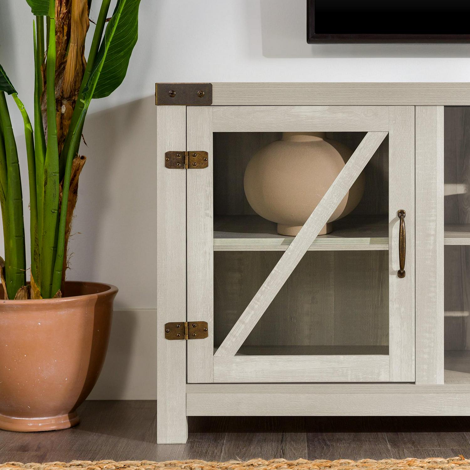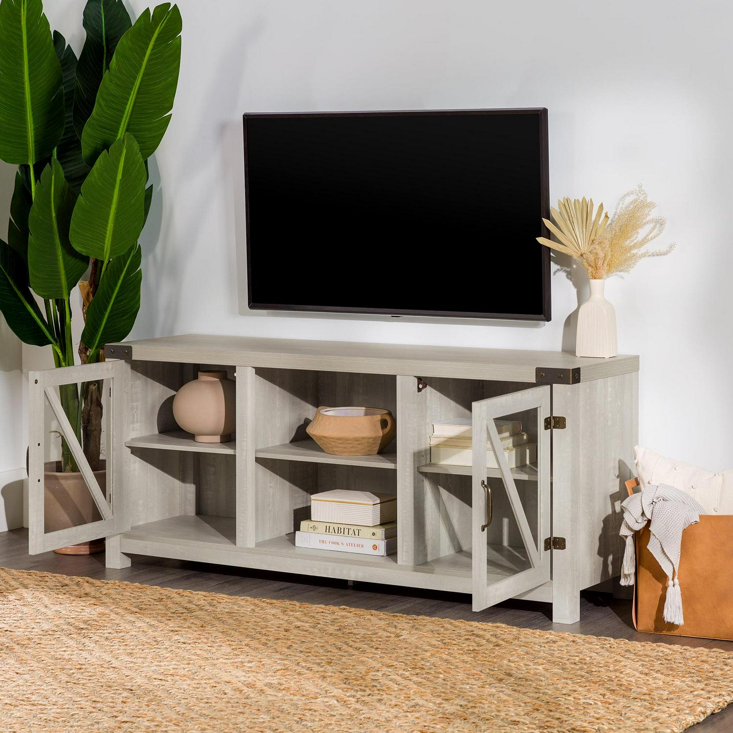Modern Farmhouse Glass Door TV Stand for TVs up to 65 , Stone Grey
