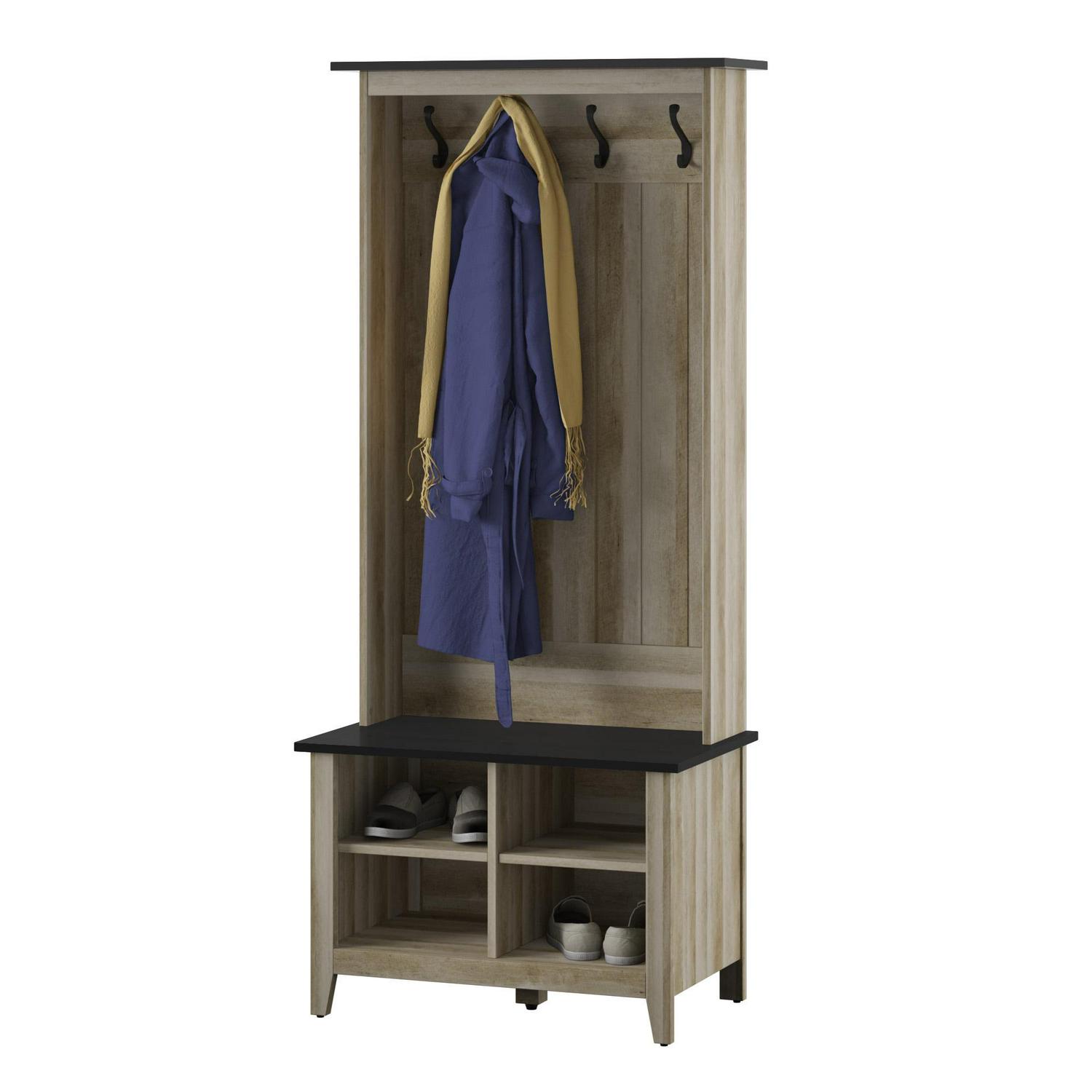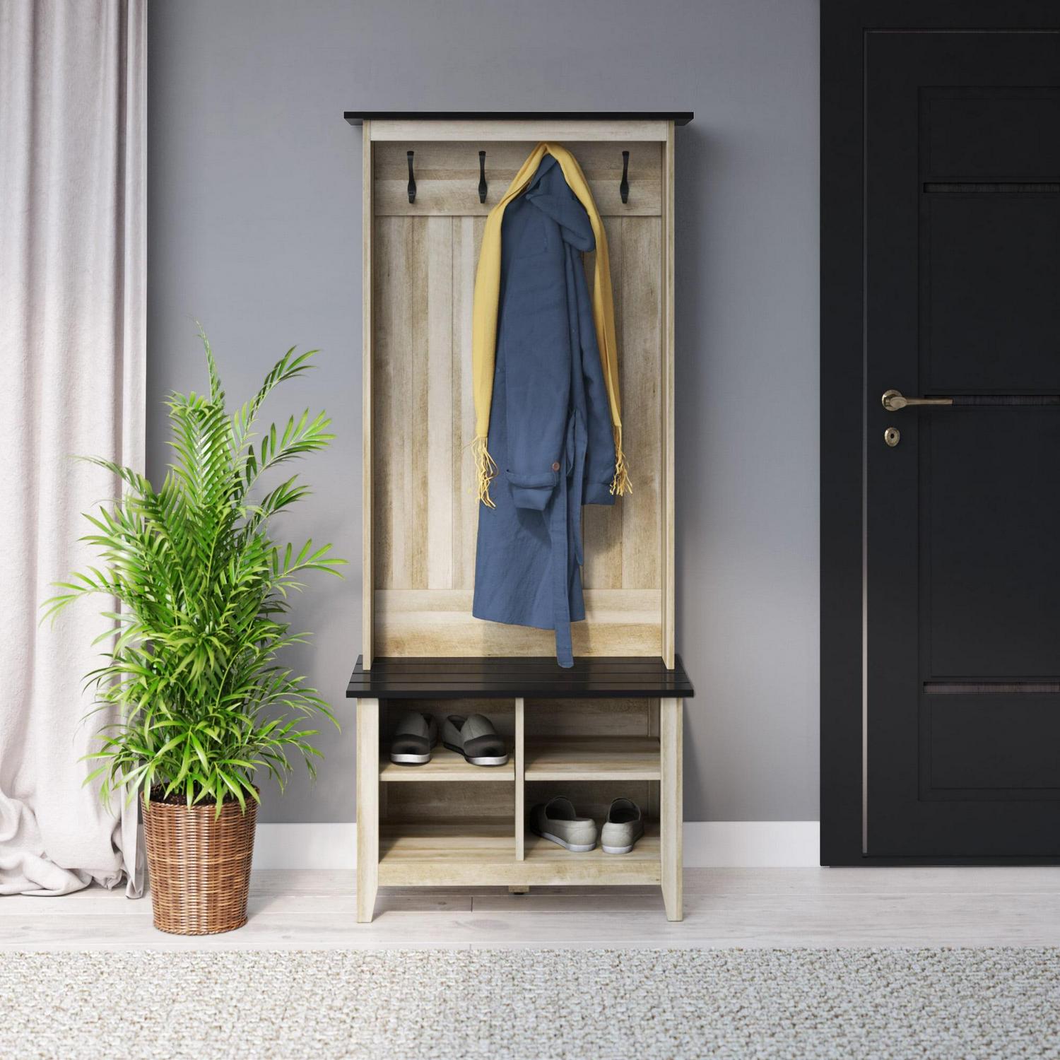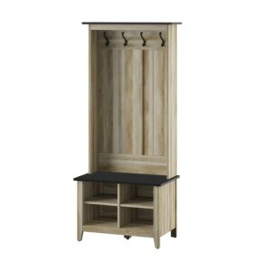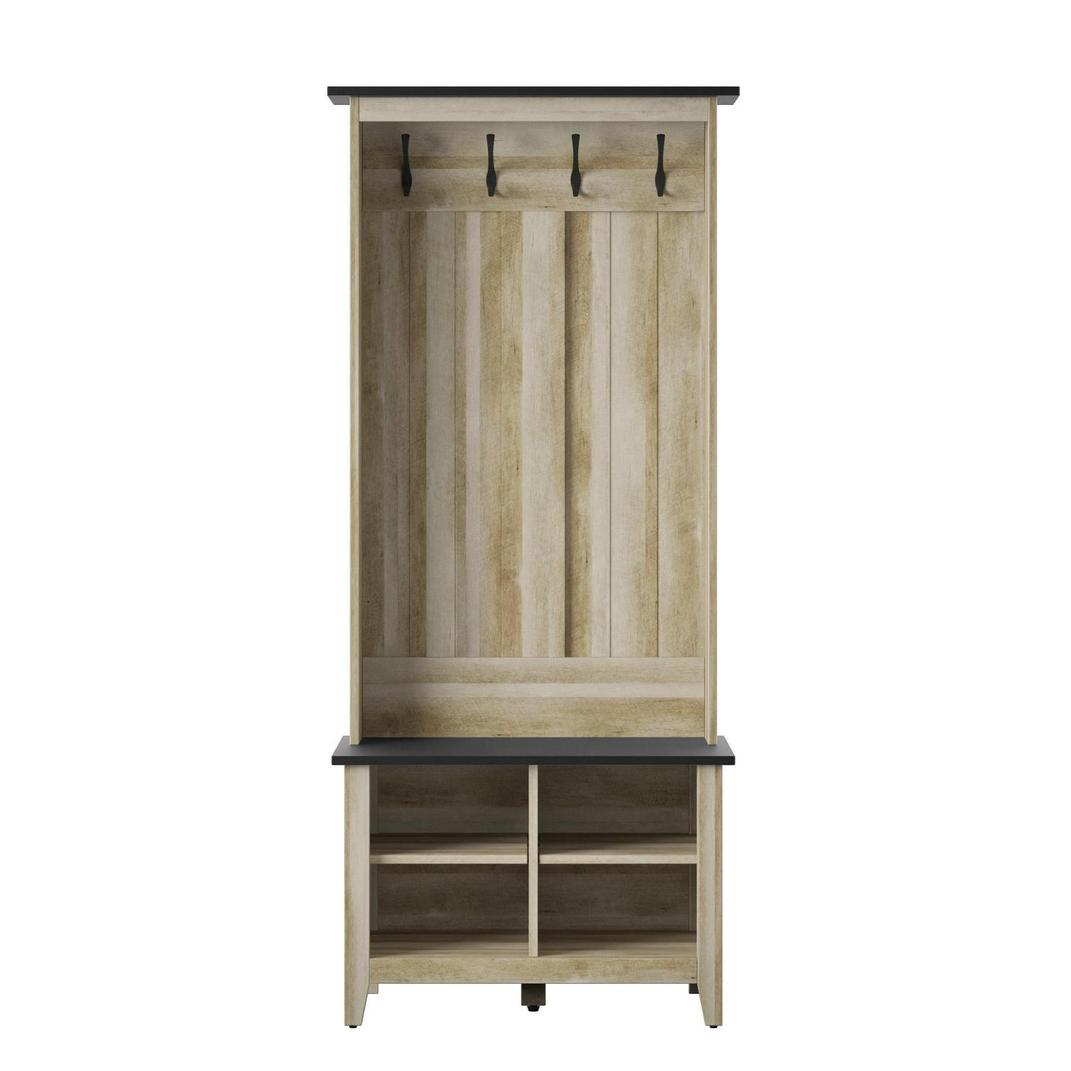 Modern Farmhouse Hall Tree with Storage Bench in Autumn Driftwood