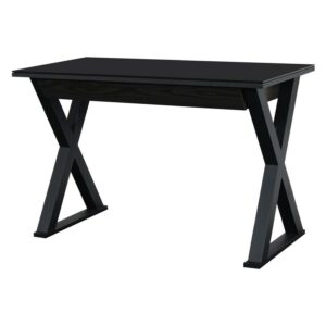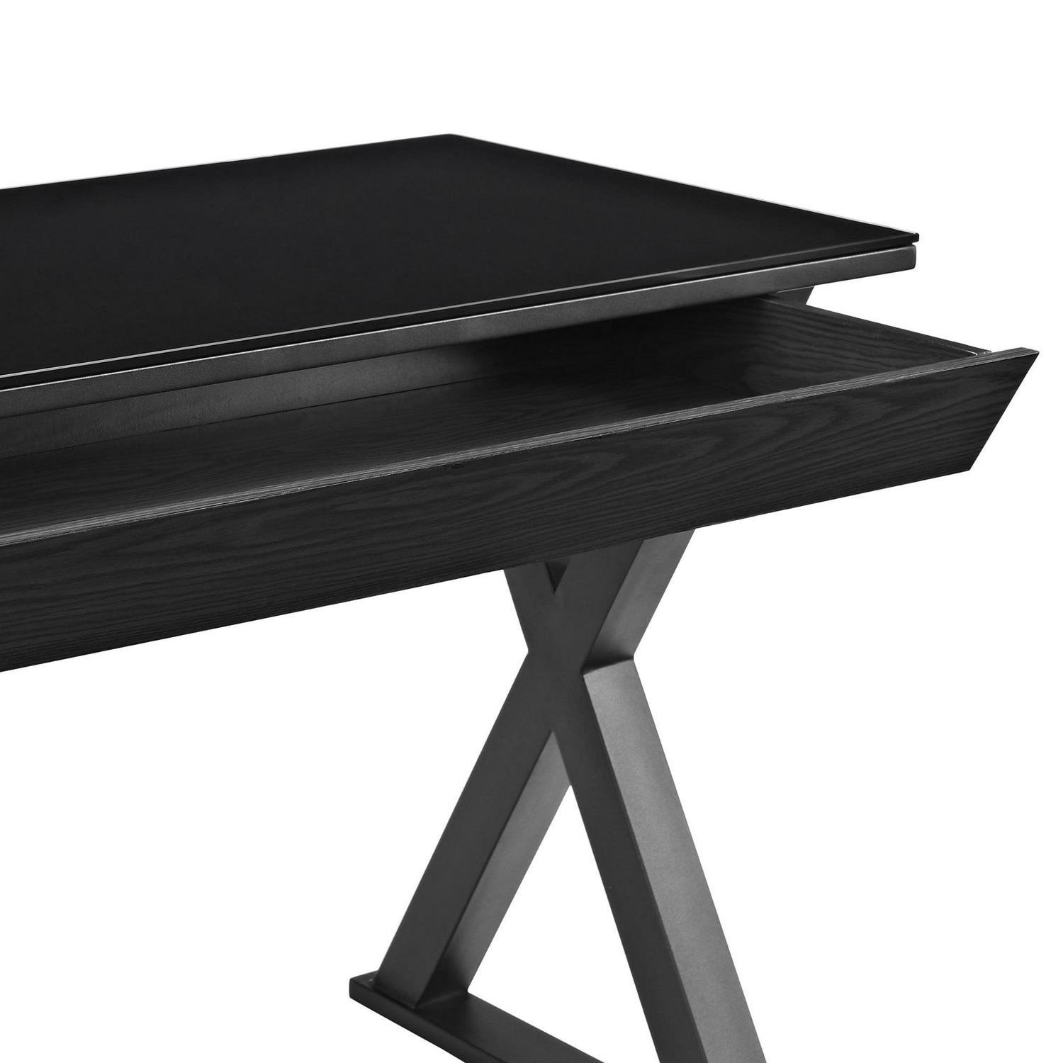 Modernize your home office with this stunning x-frame computer desk. Constructed of thick tempered safety glass, steel metal frame and high-grade manufactured wood, together create a sturdy, stylish workspace for any room in your home. Features a large storage drawer for all your work essentials and to maintain a neat appearance. This contemporary desk also has x-frame designed legs making it both classic and sleek in style. Have a convenient spot to write, study or work on your computer.