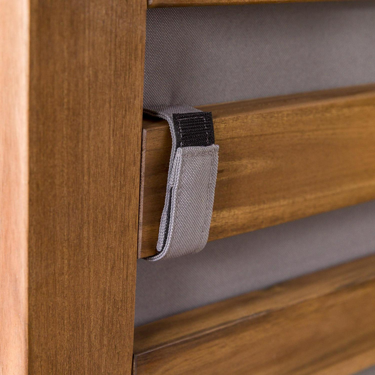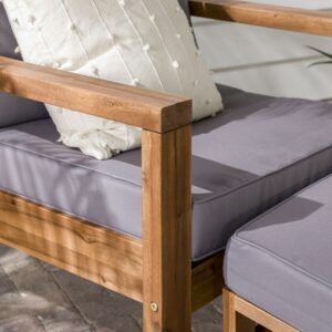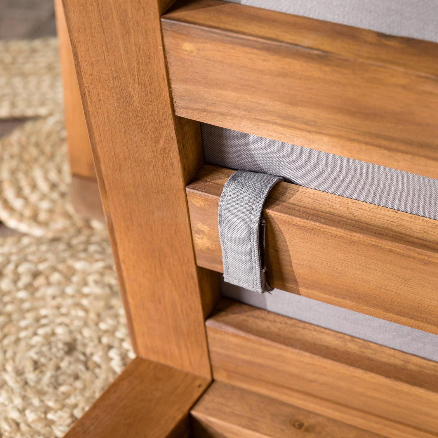 - Materials: Acacia wood with 100% polyester, foam cushions