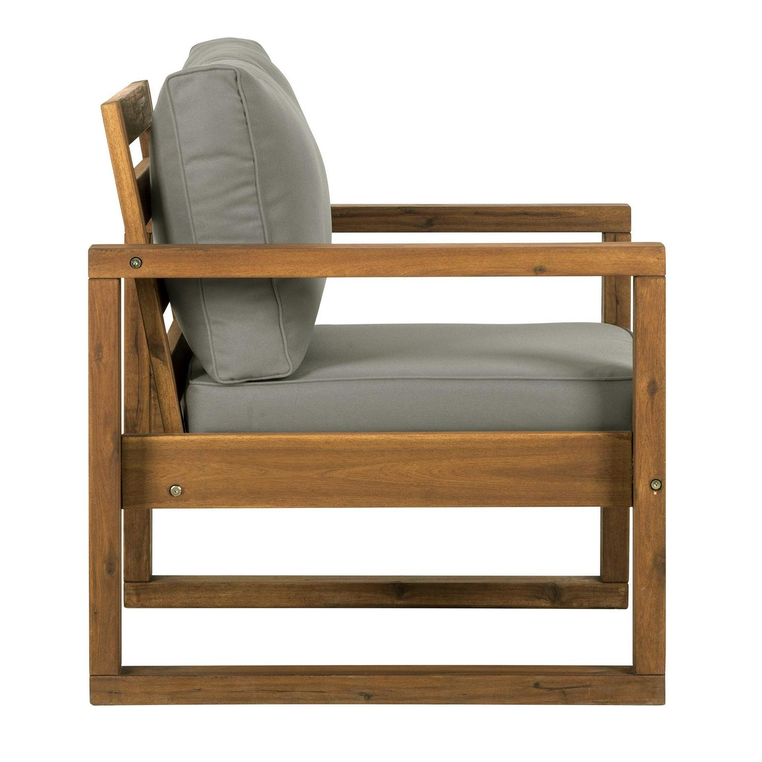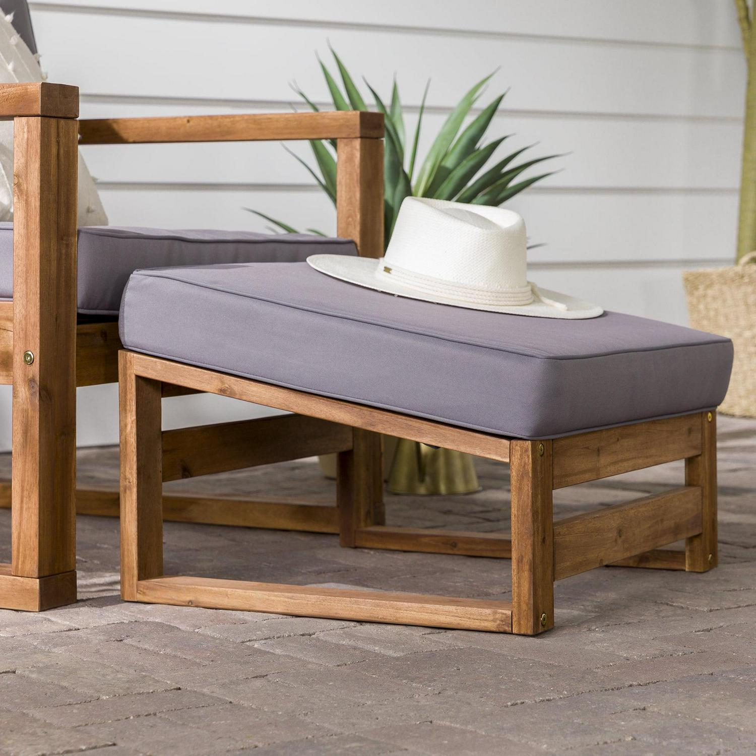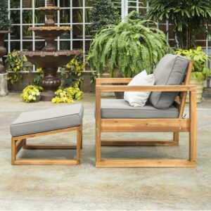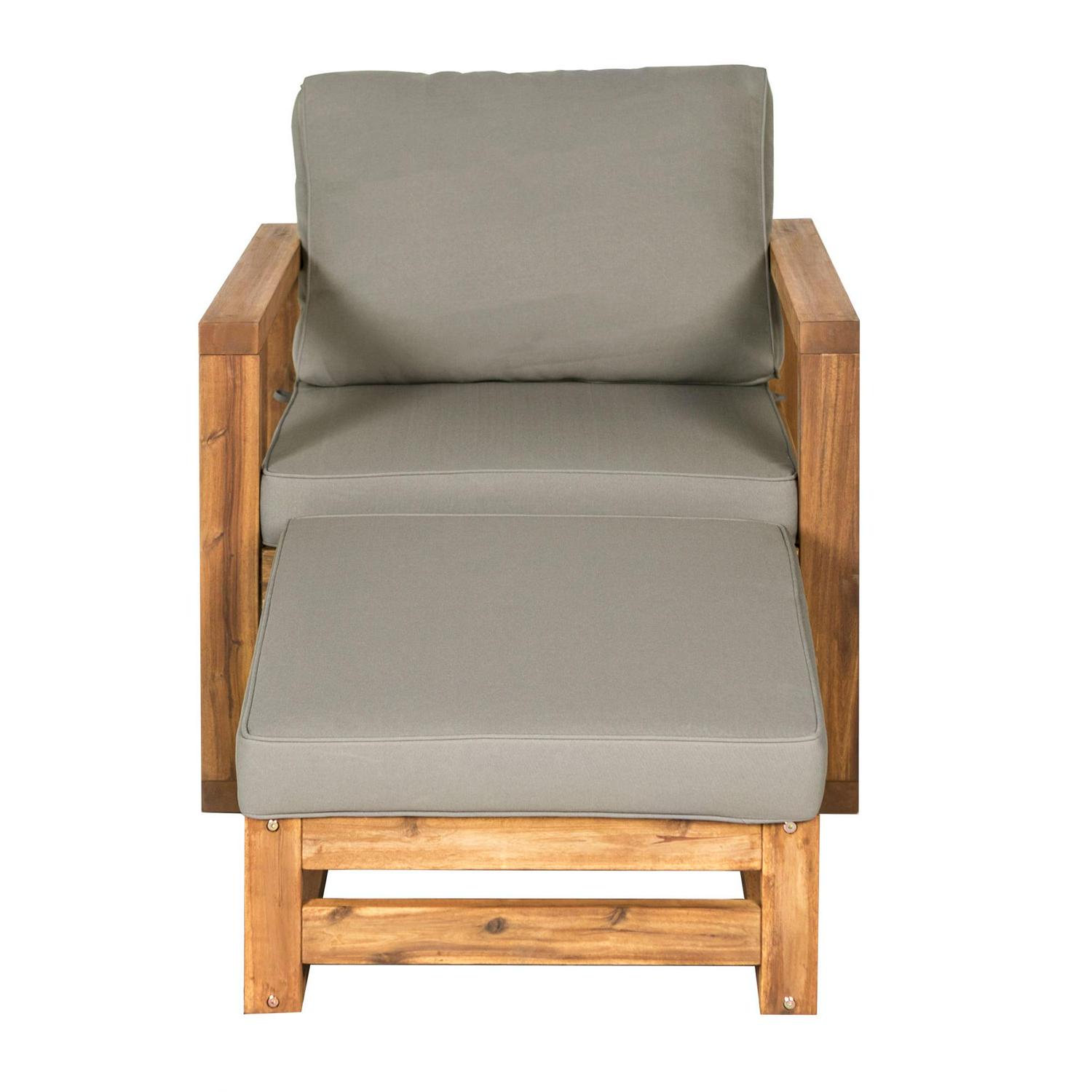 Lounge in the summer sun on lazy afternoons with this patio chair and ottoman by Manor Park. The plush cushions on the ottoman, seat, and backrest provide a comfortable perch for extended periods of time. Read a book by the pool or invite guests over for casual conversation while you put your feet up on the included, angled ottoman. Made from Acacia wood with polyester, foam cushions, this outdoor chair will become a staple in your backyard for years to come.