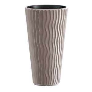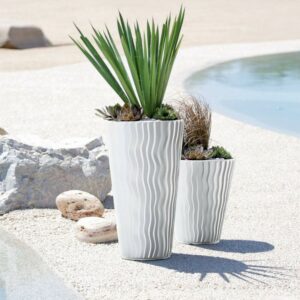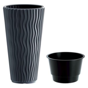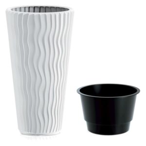– Contemporary planters. Insert included to raise the level of the plant you are potting which makes the planter lighter using less soil