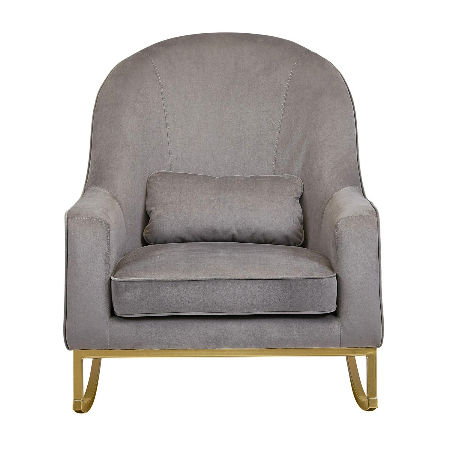 MoDRN Glam Velvet Rocking Chair with Lumbar Pillow, Charcoal Grey/Satin Brass