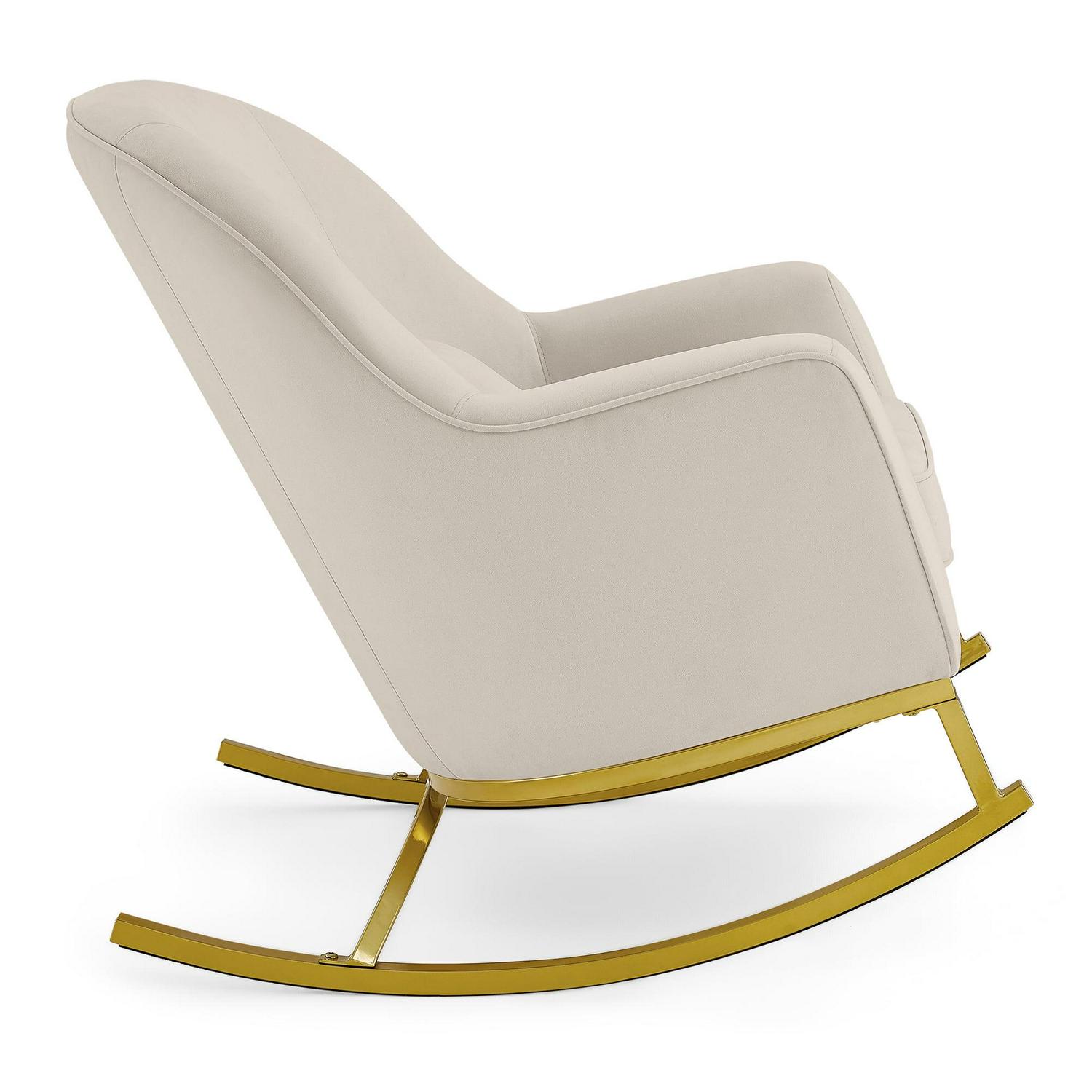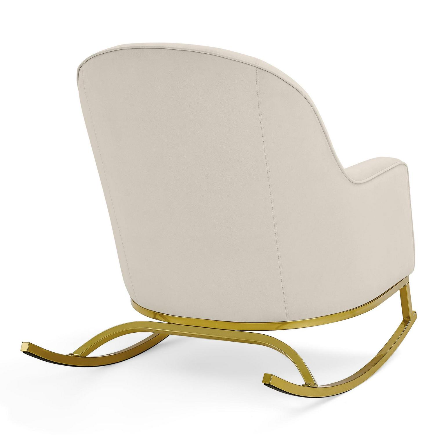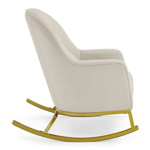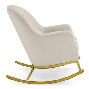 MoDRN Glam Velvet Rocking Chair, Off-White with Satin Brass: