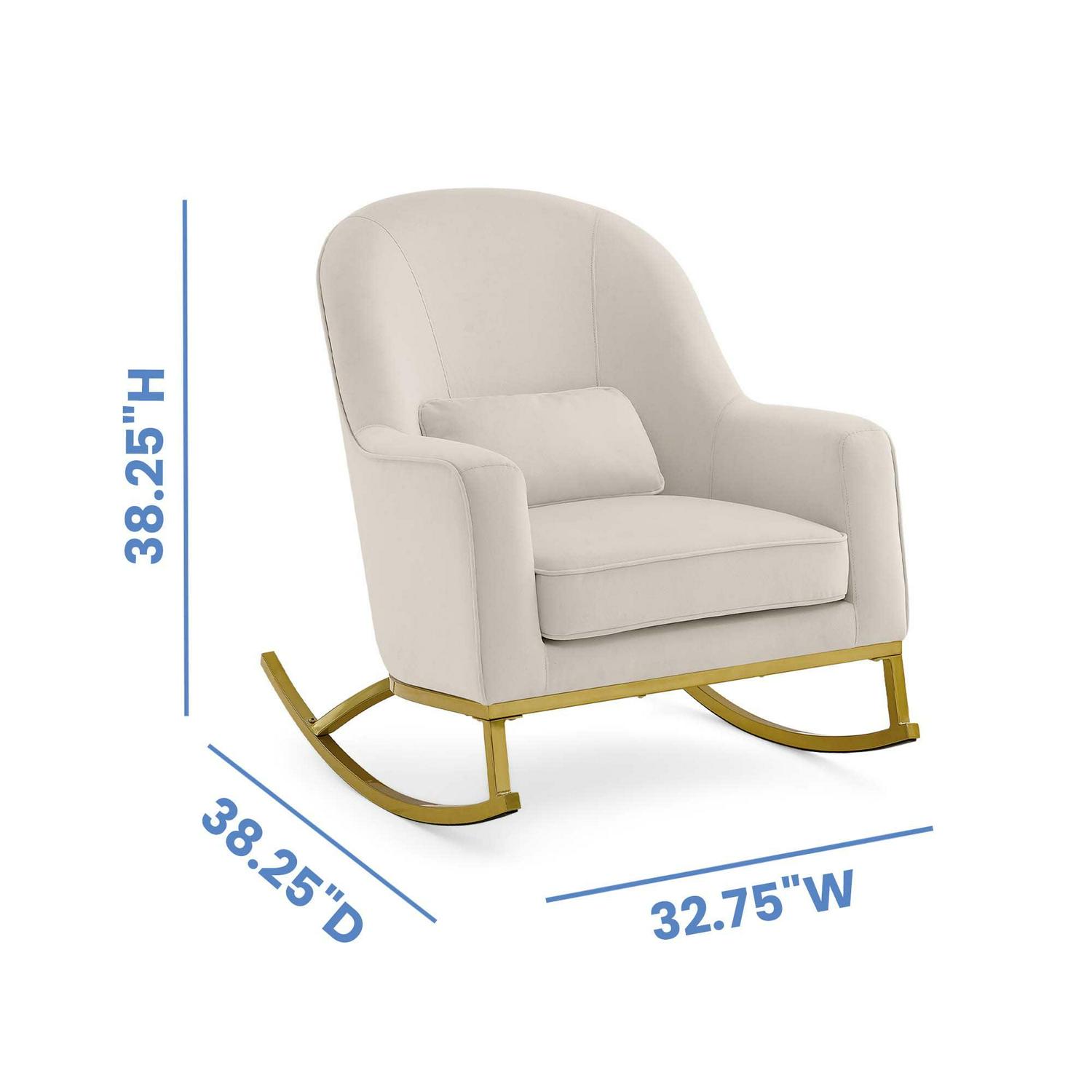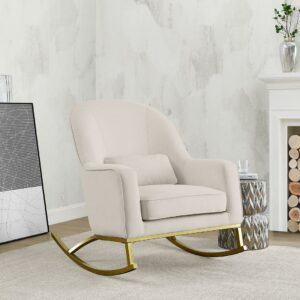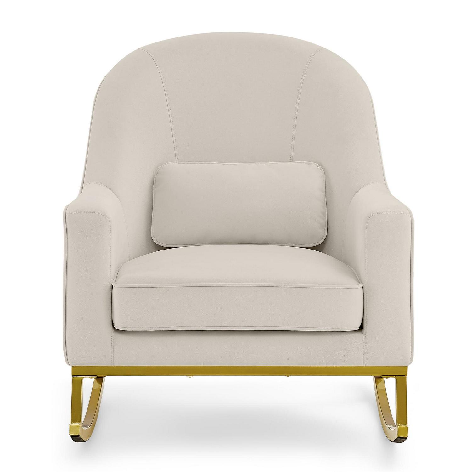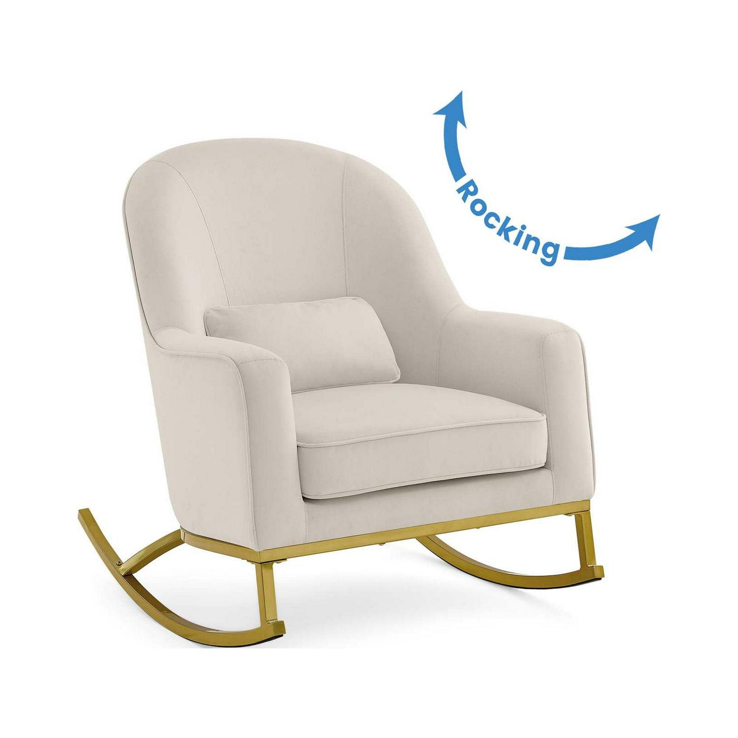 MoDRN Glam Velvet Rocking Chair with Lumbar Pillow, Off-White/Satin Brass