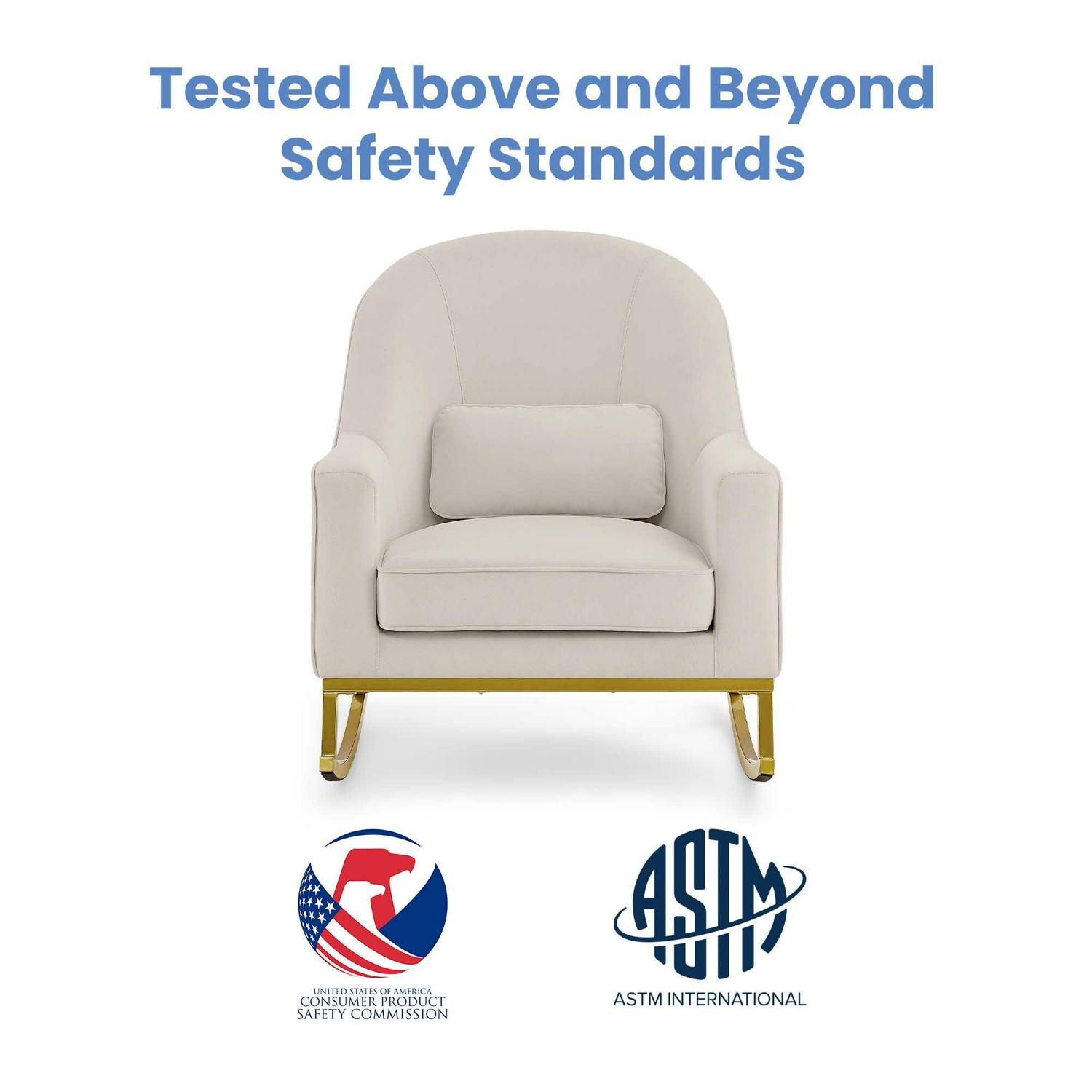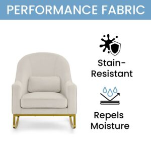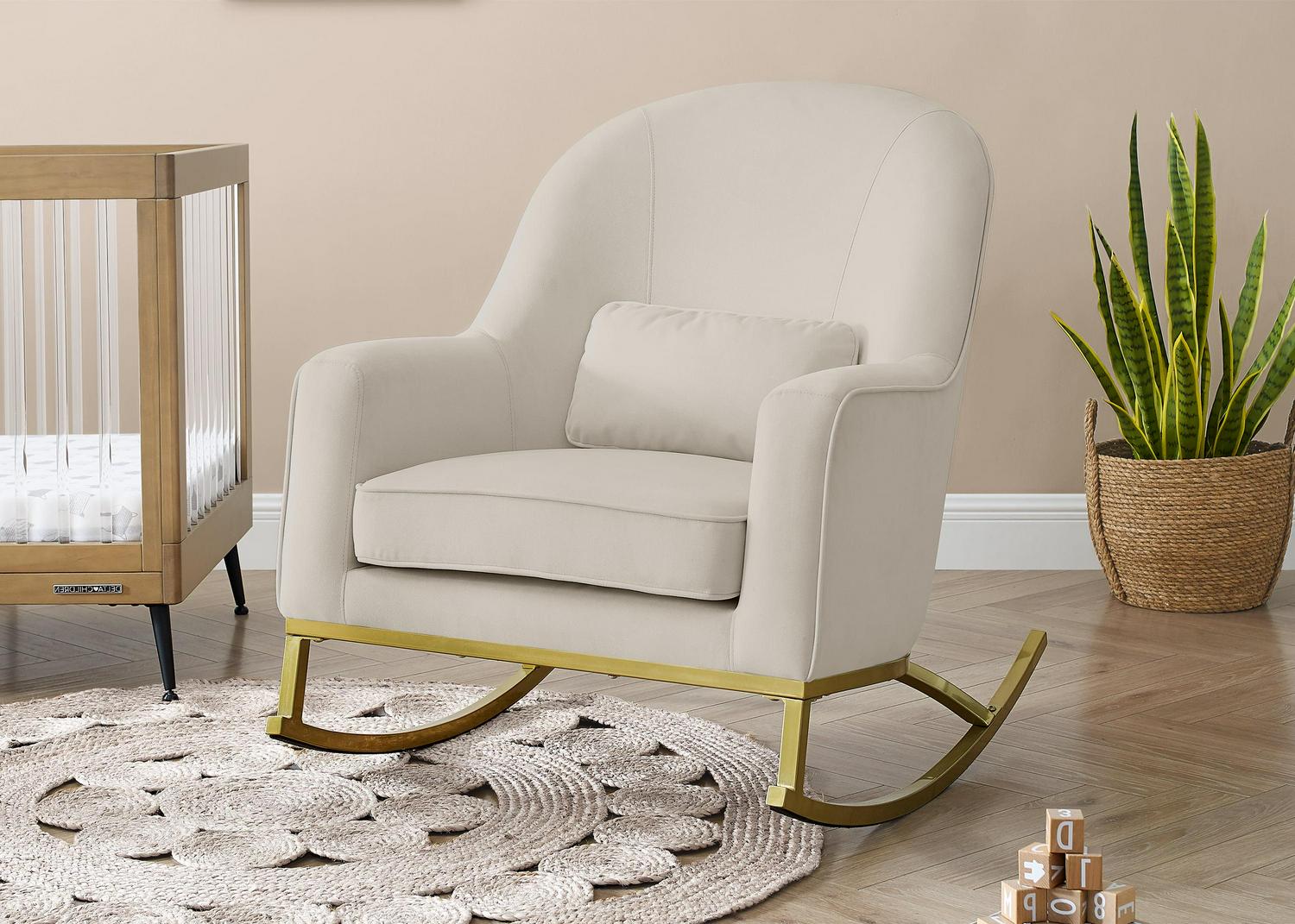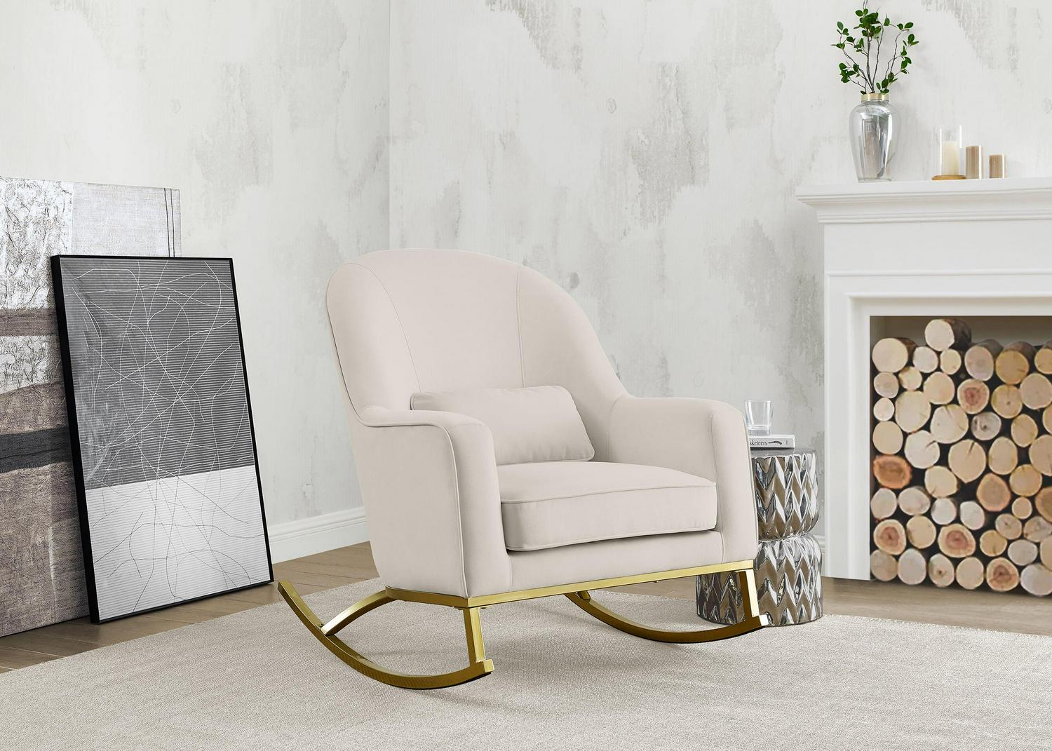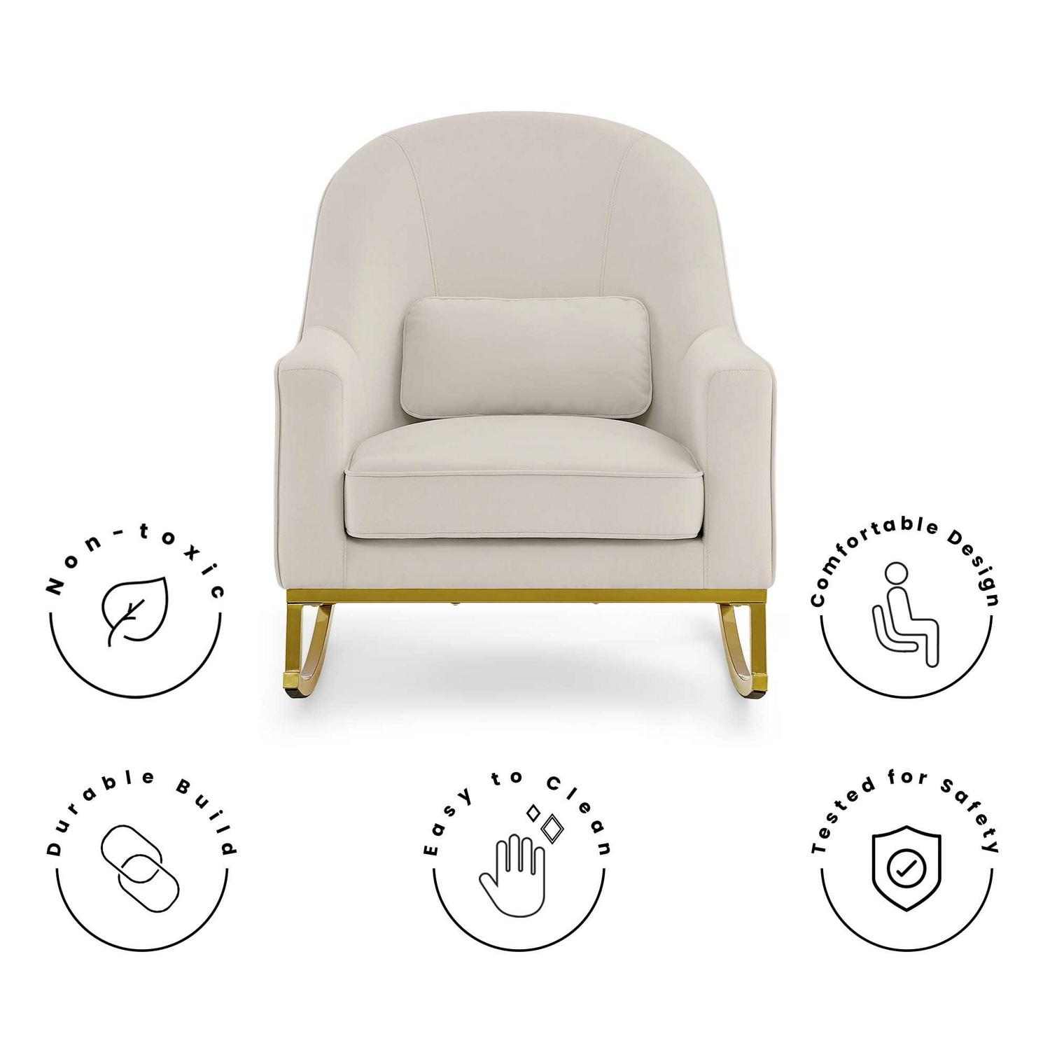 MoDRN Glam Velvet Rocking Chair with Lumbar Pillow, Off-White/Satin Brass