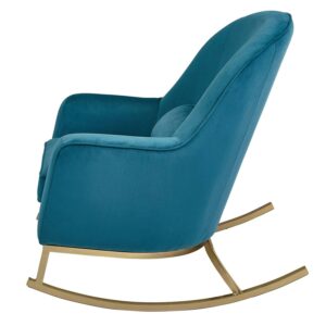 MoDRN Glam Velvet Rocking Chair, Teal with Satin Brass: