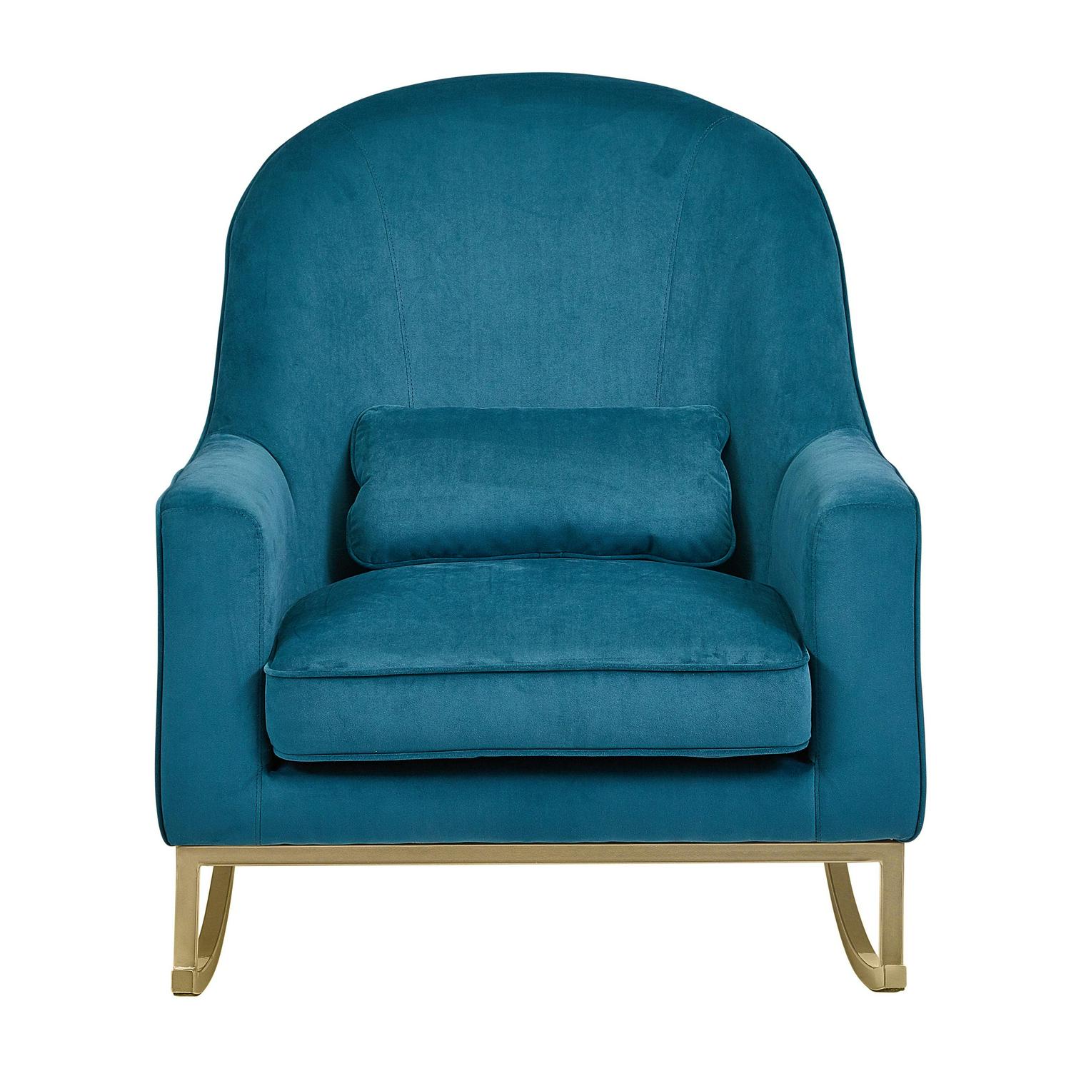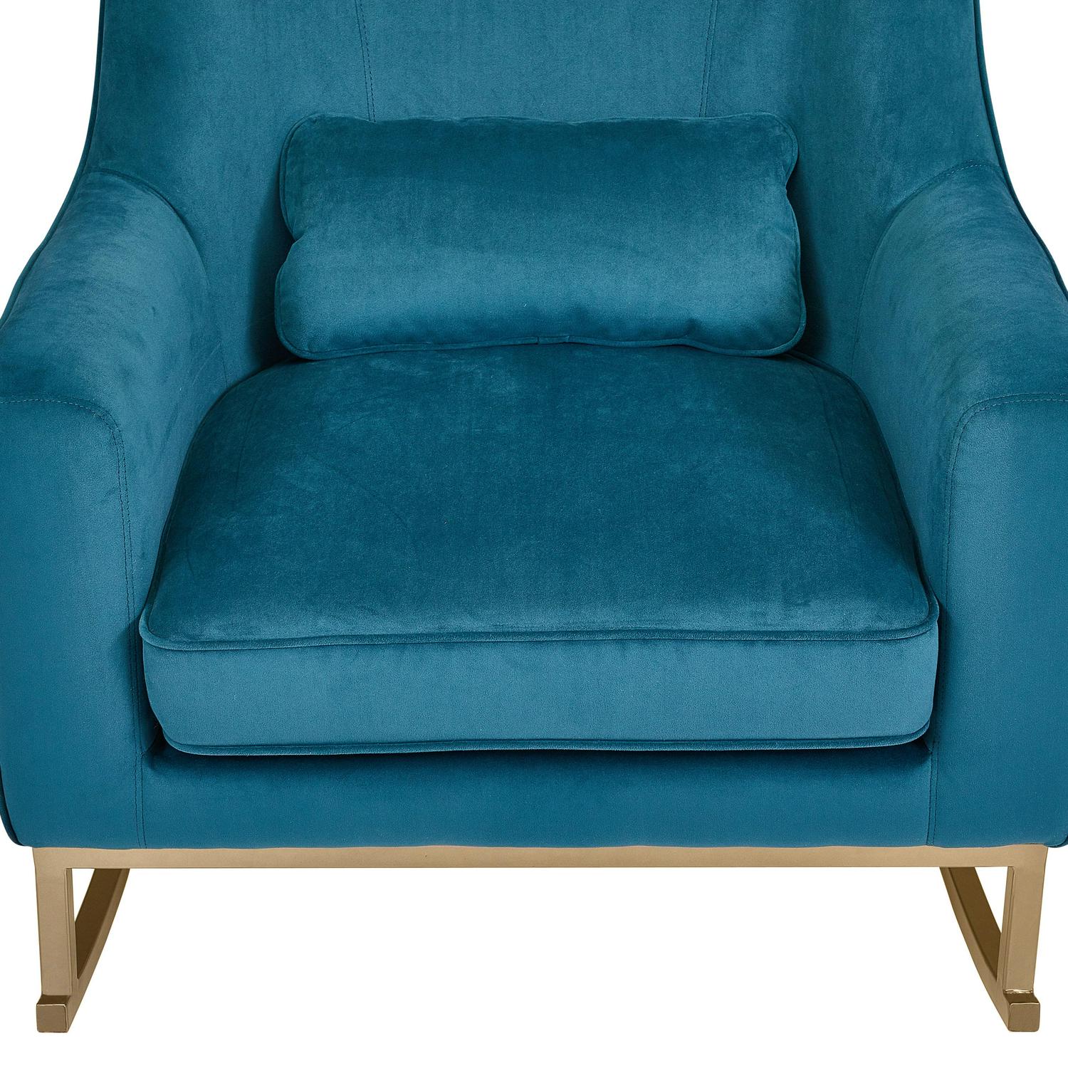 MoDRN Glam Velvet Rocking Chair with Lumbar Pillow, Teal/Satin Brass