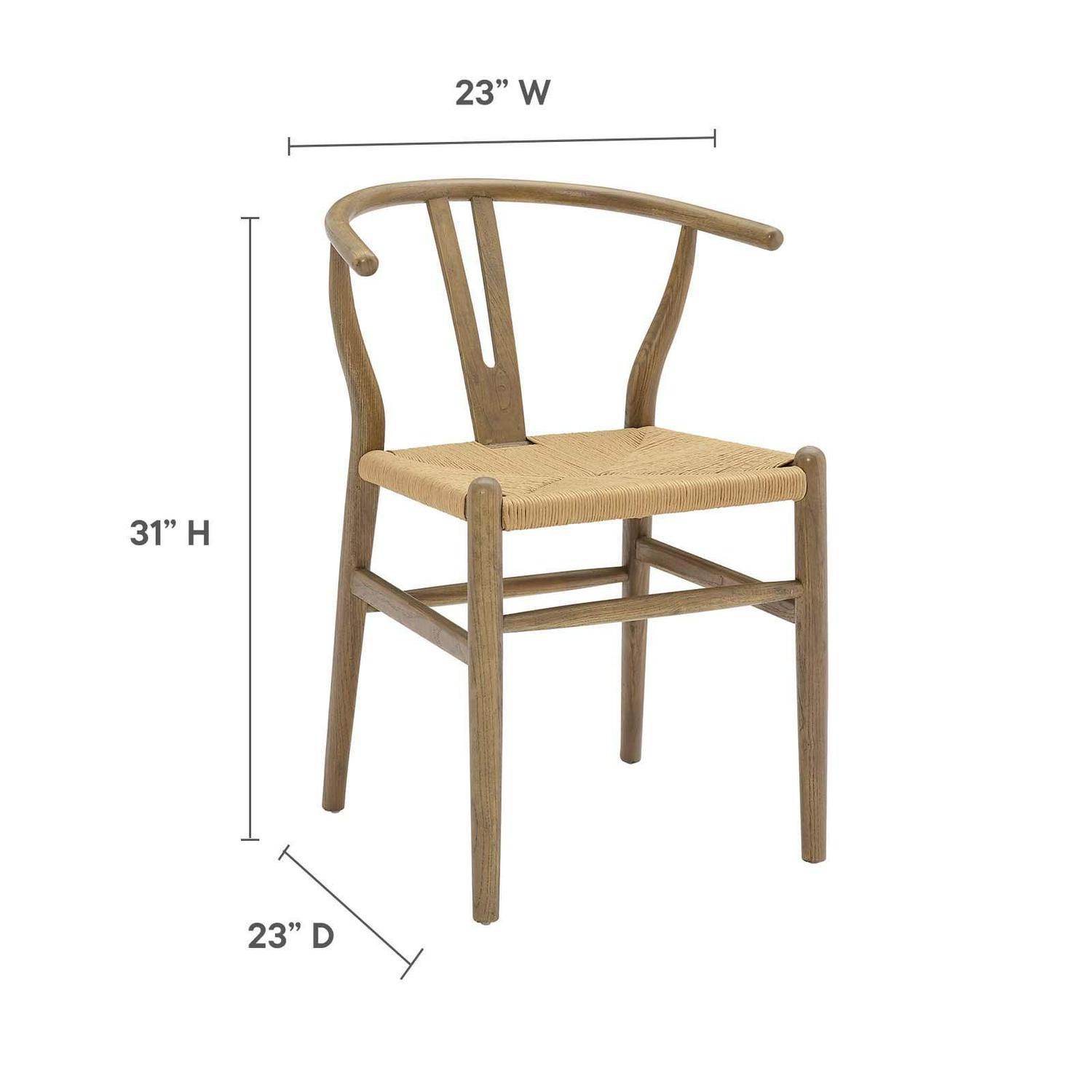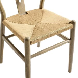 Time flows effortlessly through the Amish wooden dining side chair. The craftsmanship is evident throughout a piece that appears both petite and boldly courageous. While Amish conveys a transitional feel with its solid weathered gray wood back and base, the result is an enduring design with a style that doesn t fade. Given the iconic form and staggered-level wooden support rods, Amish deftly develops the interplay between permanence and sequential movements forward. The seat is made of paper rope, a new twine that is soft, anti-static and durable. Comes fully assembled. Set Includes: one – Amish Dining Side Chair