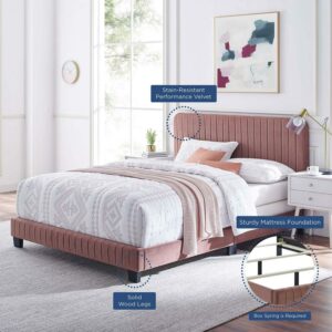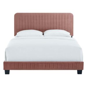 Modway Celine Channel Tufted Performance Velvet Queen Bed in Dusty Rose