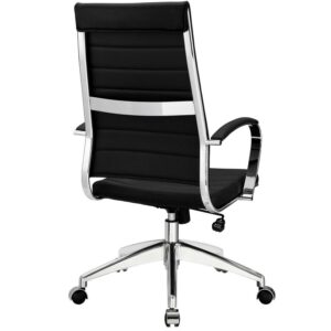 Steer the course and sail to an island called style. Jive is the result of chair makers who decided to design a chair that just works. Functionally, it is a pleasure to sit in as the durable ribbed vinyl back provides natural posture support. The seat cushion and arms are padded, while the form of the armrests was intended to maximize a 90-degree wrist angling for typing. Jive s chrome-plated aluminum base is fitted with five dual-wheel casters, while a tension knob and tilt lock allow for easy back position adjustments. This is a chair made for the modern office and a welcome embodiment of the spirit of progress and determination.