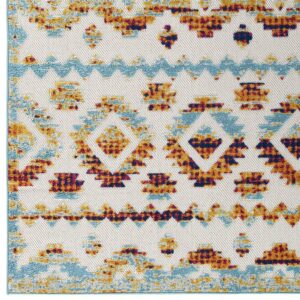 Modway Reflect Takara Abstract Diamond Moroccan Trellis 5×8 Indoor and Outdoor Area Rug in Multicolored