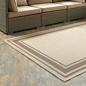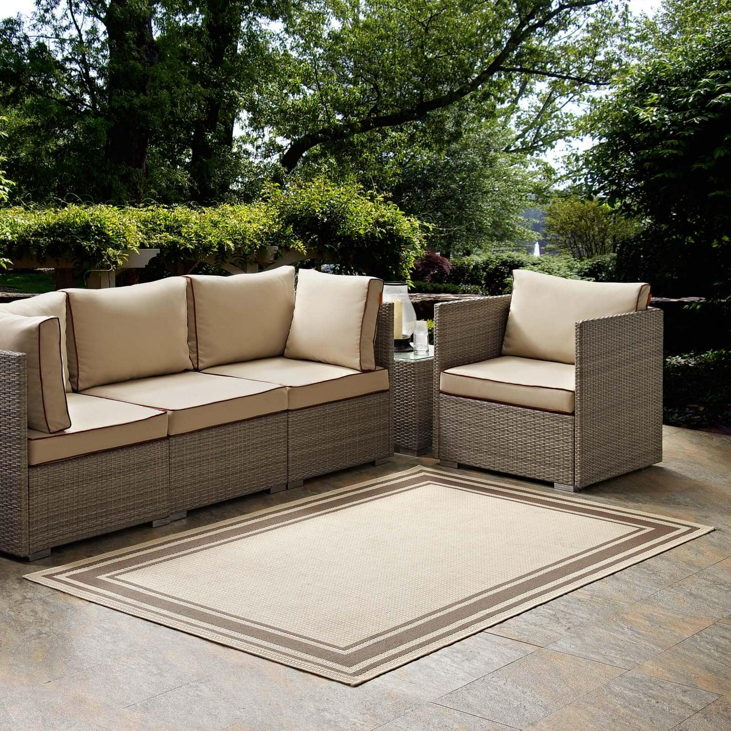Modway Rim Solid Border 8×10 Indoor and Outdoor Area Rug in Light and Dark Beige