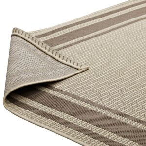 – EASY MAINTENANCE – This machine-woven indoor/outdoor polypropylene rug offers easy upkeep for long-lasting use that outlasts daily wear. Hose down or vacuum periodically to maintain a fresh look