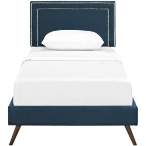 Modway Virginia Twin Fabric Platform Bed with Round Splayed Legs in Azure