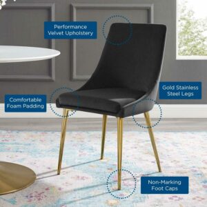 – STURDY CONSTRUCTION – Supporting up to 300 pounds, this modern dining chair rests atop four sturdy tapered gold stainless steel legs a stunning complement to the rich velvet texture
