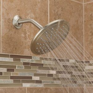 – generously sized 8″ diameter this eco performance showerhead conserves water without sacrificing performance
