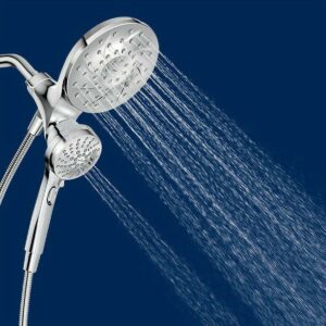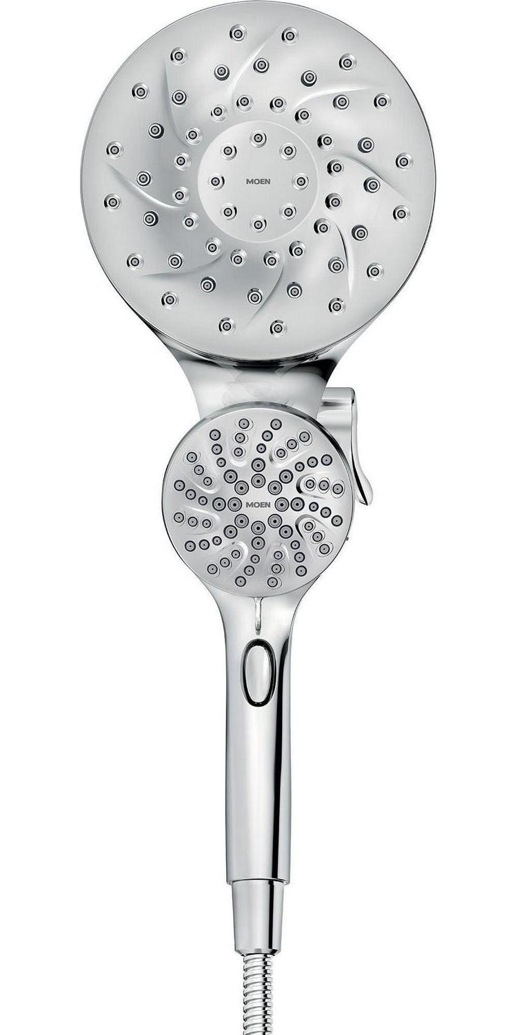 Complete your bathroom with the Moen Magnetix Chrome 2.5 GPM Handheld/Rain Shower Head 2-in-1 Combo. Finished in gleaming chrome, this handheld showerhead is the perfect complement to your stylish bath hardware.