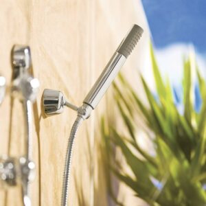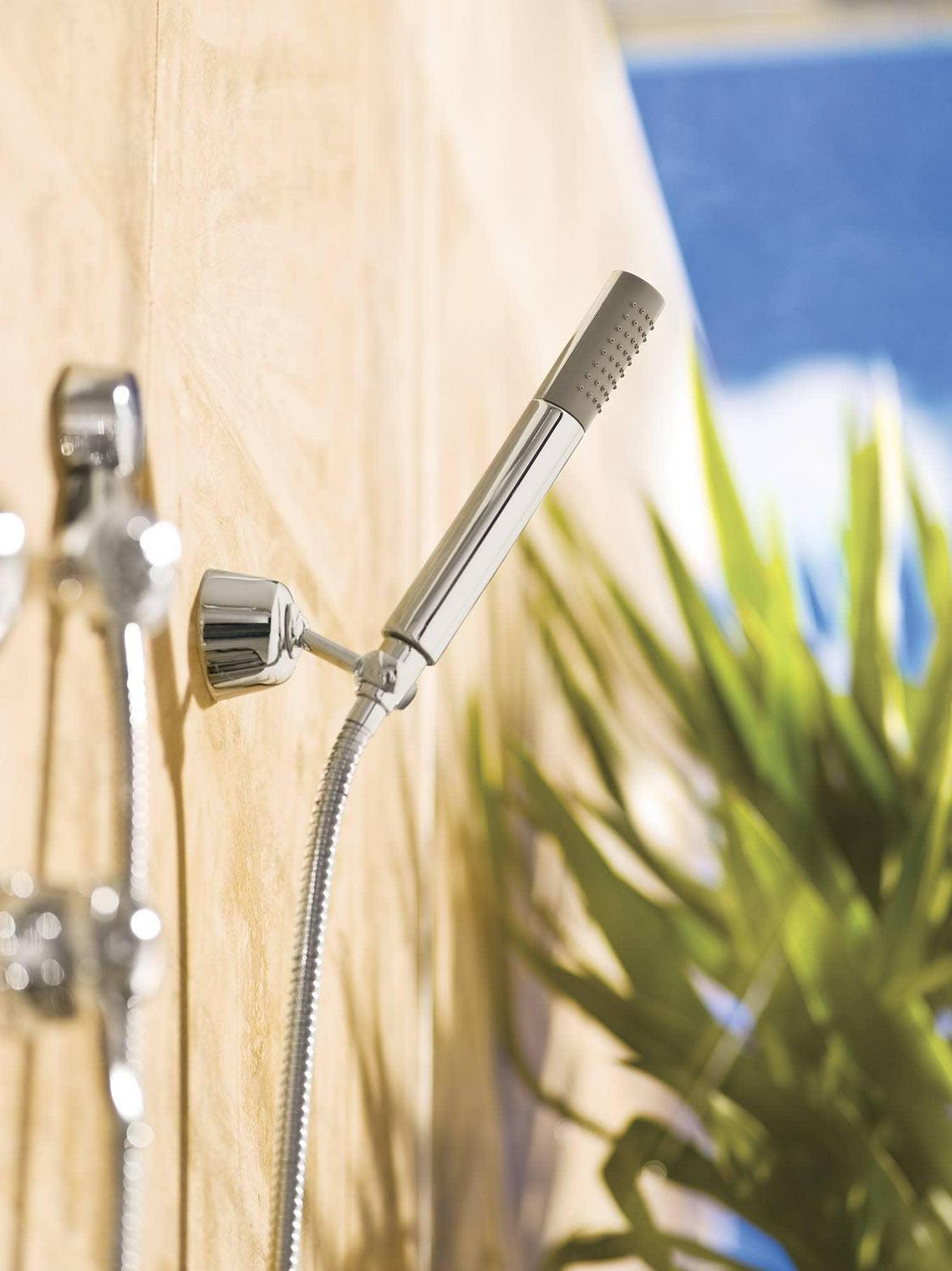 Chrome finish is highly reflective for a mirror-like look that works with any decorating style. One-function 1-1/8″ diameter spray head this eco performance showerhead conserves water without sacrificing performance. Sold separately – drop ell handheld showerhead connection for installation of hose against shower wall. Meets epa watersense; criteria to conserve water without sacrificing performance