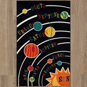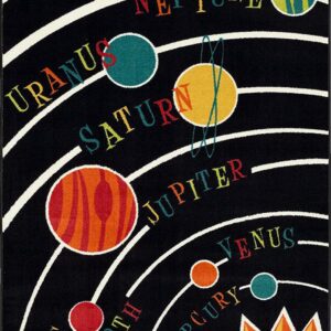 Mohawk Home Aurora (Kids) Solar System Black Printed Area Rug, 7’6 x10′, Black and Orange